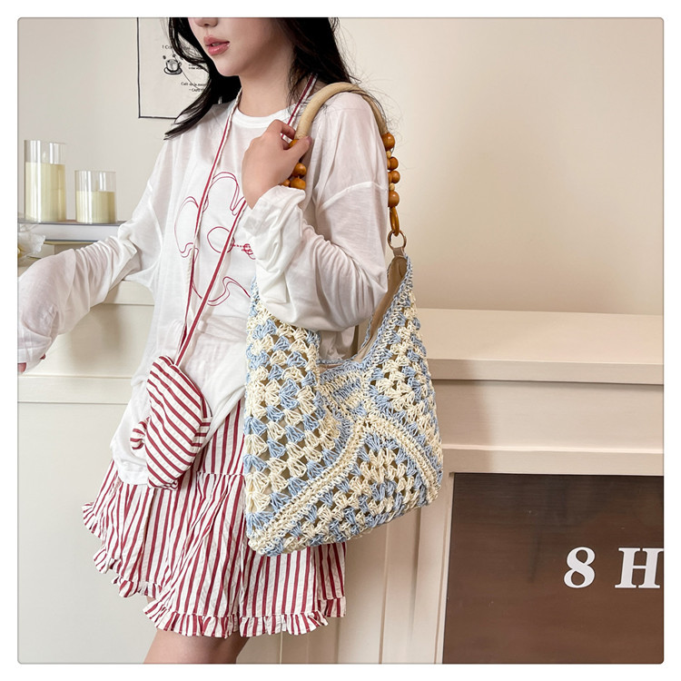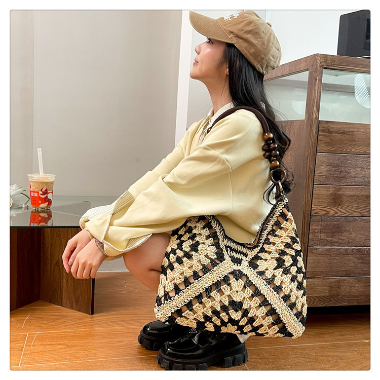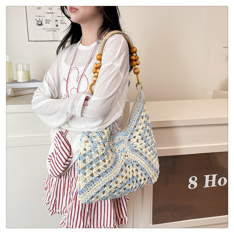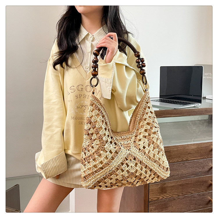 2025 새로운 짠 가방 여성 해변 휴가 스타일 대용량 토트 백 여행 패션 캐주얼 밀짚 가방스토어 가기