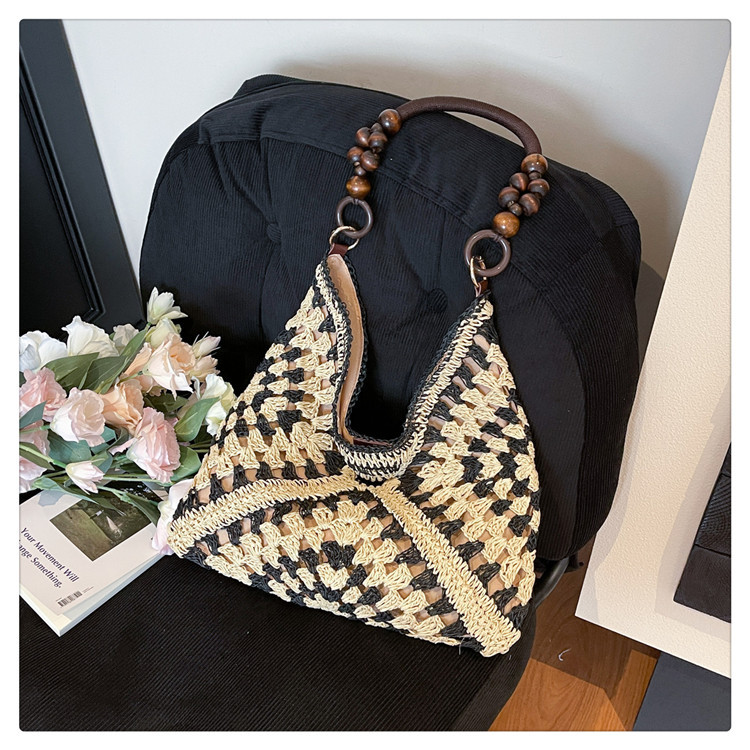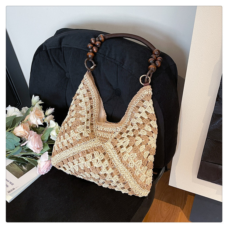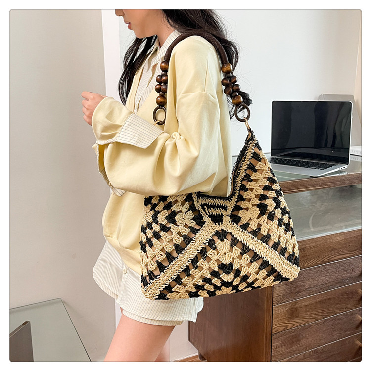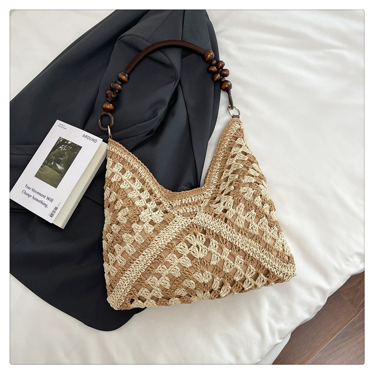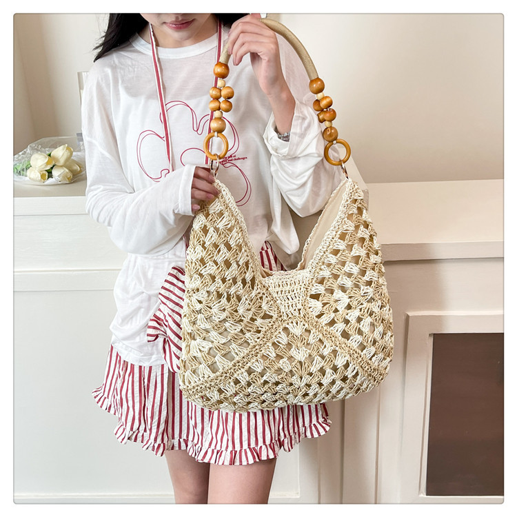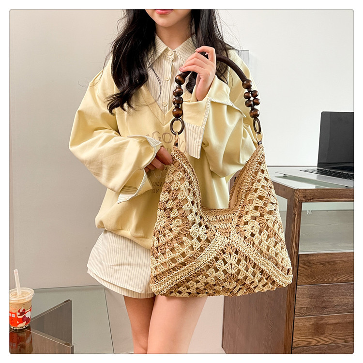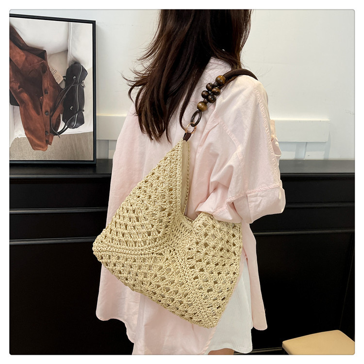 2025 새로운 짠 가방 여성 해변 휴가 스타일 대용량 토트 백 여행 패션 캐주얼 밀짚 가방