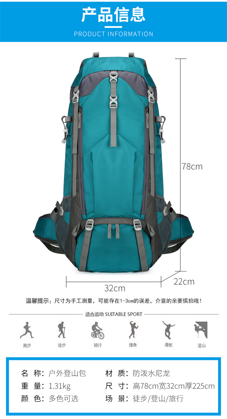 2025 새로운 국경 간 야외 캠핑 대용량 등산 가방 방수 피크닉 레저 여행 배낭