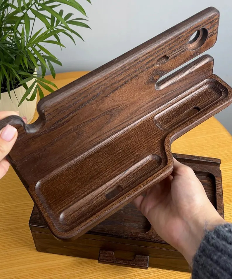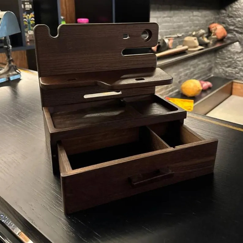 공장 맞춤형 목재 데스크탑 도어 잔해물 보관함 가정용 게으른 헤드폰 안경 시계 조리대 보관함