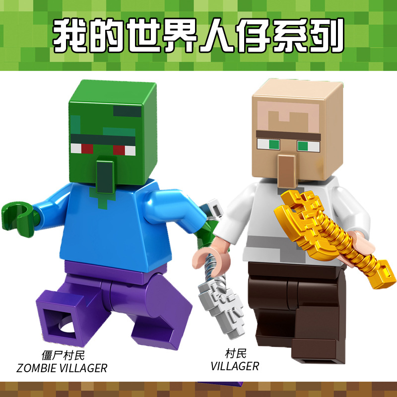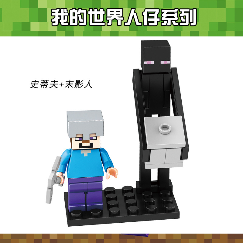 Minecraft 미니 피규어 중국 빌딩 블록 해골 무기 조립 소년 스티브 장난감 Enderman스토어 가기