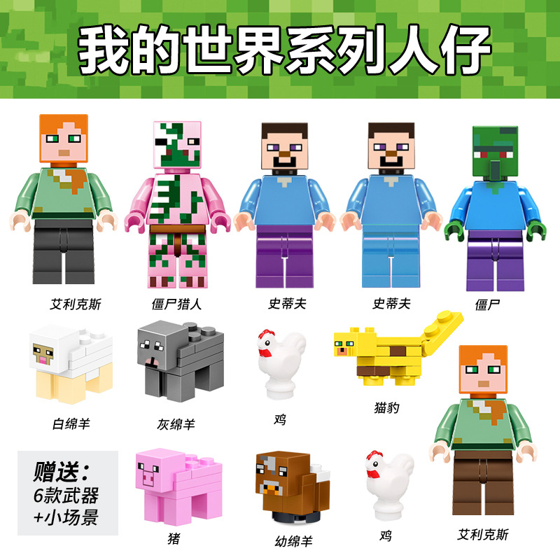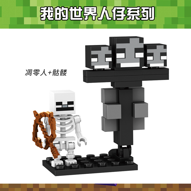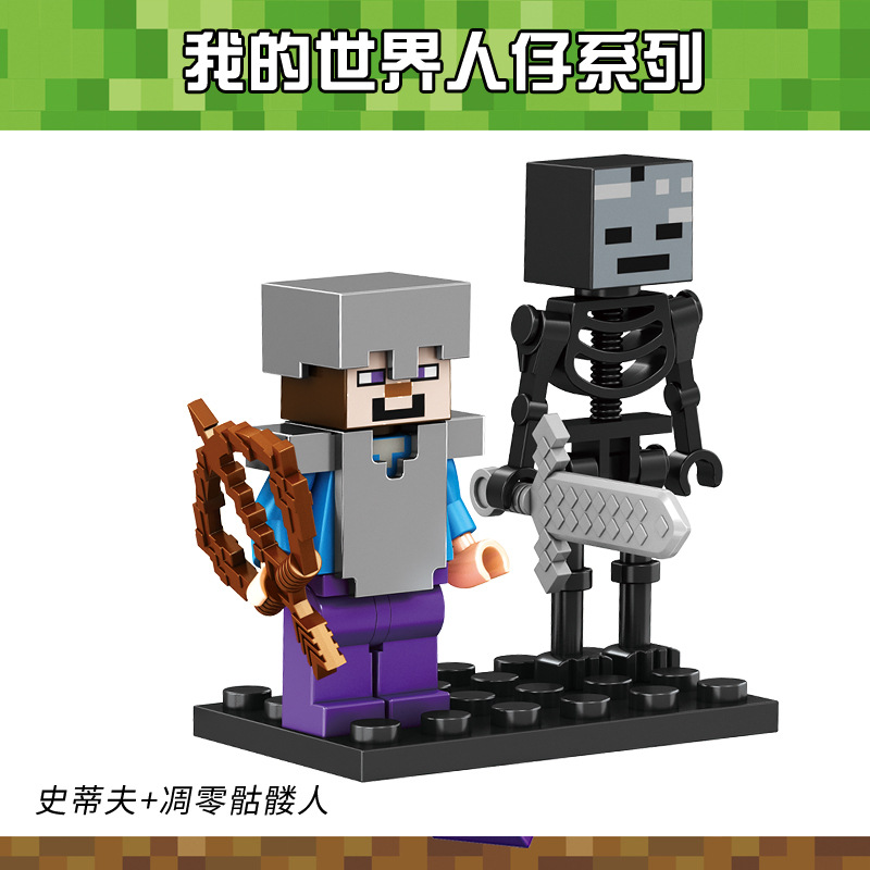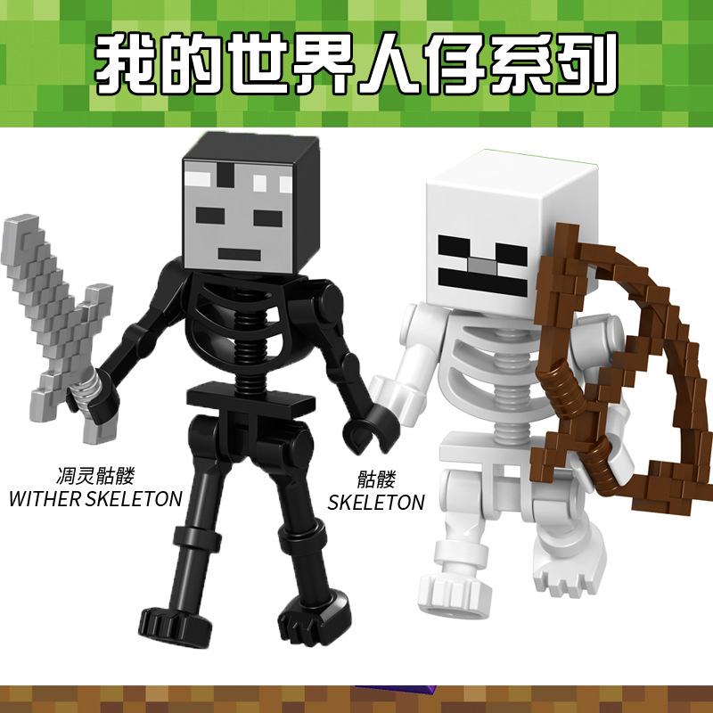 Minecraft 미니 피규어 중국 빌딩 블록 해골 무기 조립 소년 스티브 장난감 Enderman