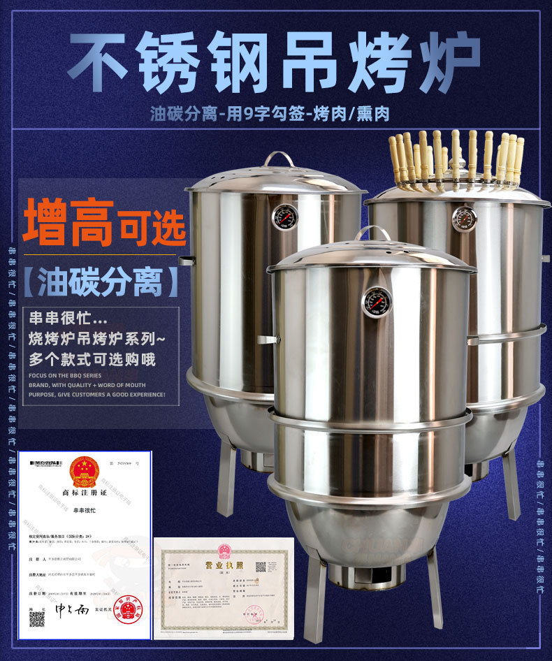 스테인레스 스틸 행잉 오븐, 무연 바베큐 오븐, 상업용 꼬치 삶은 바베큐 오븐, 닭고기, 오리, 거위, 양고기 다리 구이 오븐스토어 가기