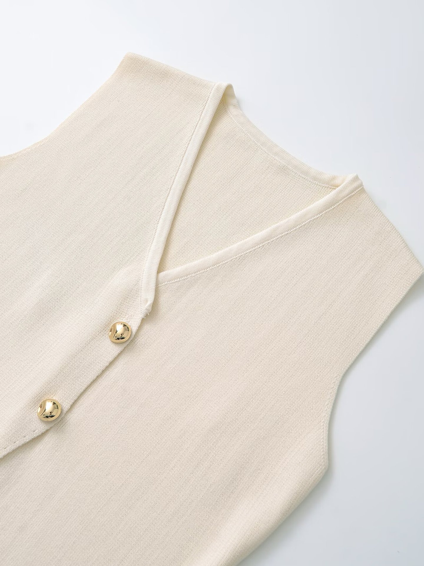 ZARO 수제 유럽과 미국 스타일의 새로운 여성 캐주얼 기질 골드 버튼 V 넥 민소매 니트 조끼스토어 가기