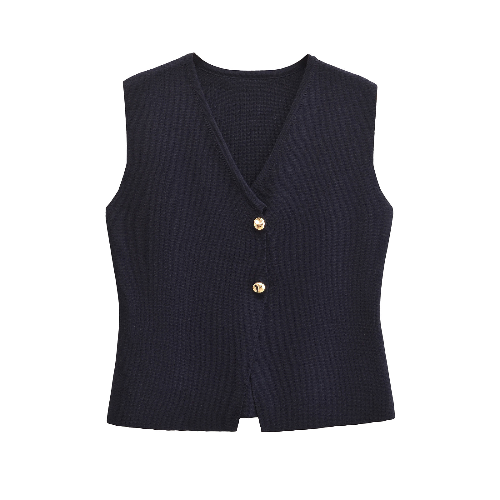 ZARO 수제 유럽과 미국 스타일의 새로운 여성 캐주얼 기질 골드 버튼 V 넥 민소매 니트 조끼