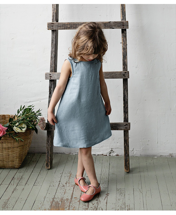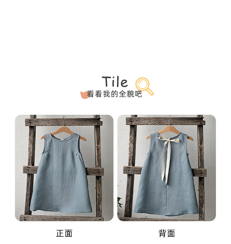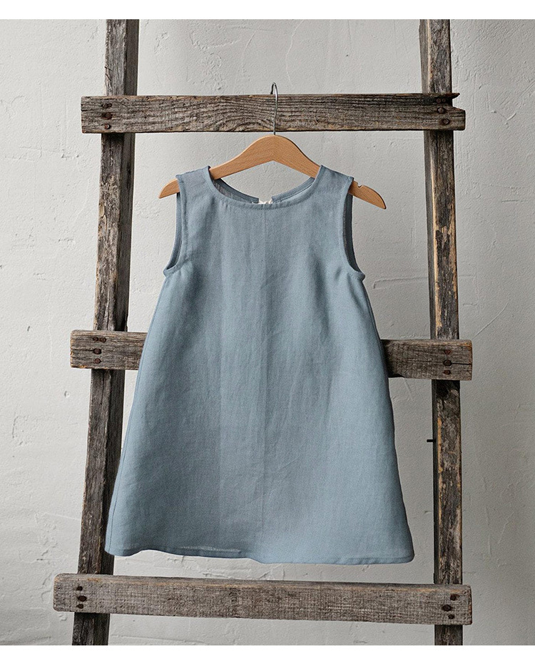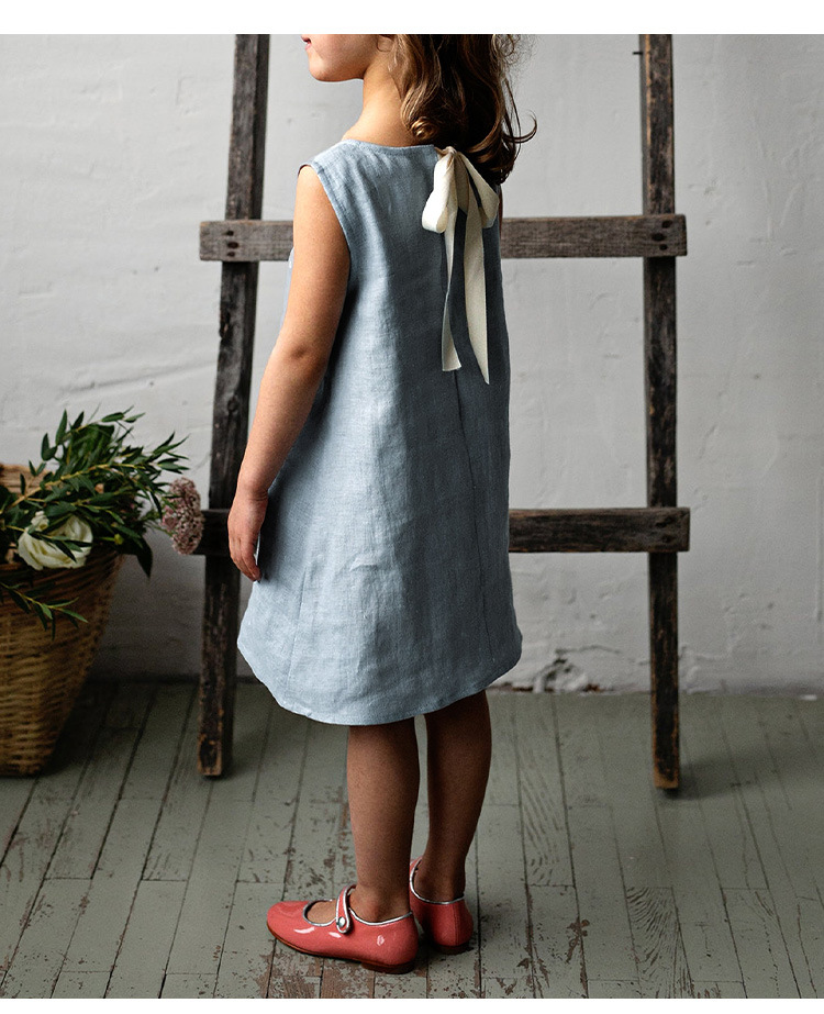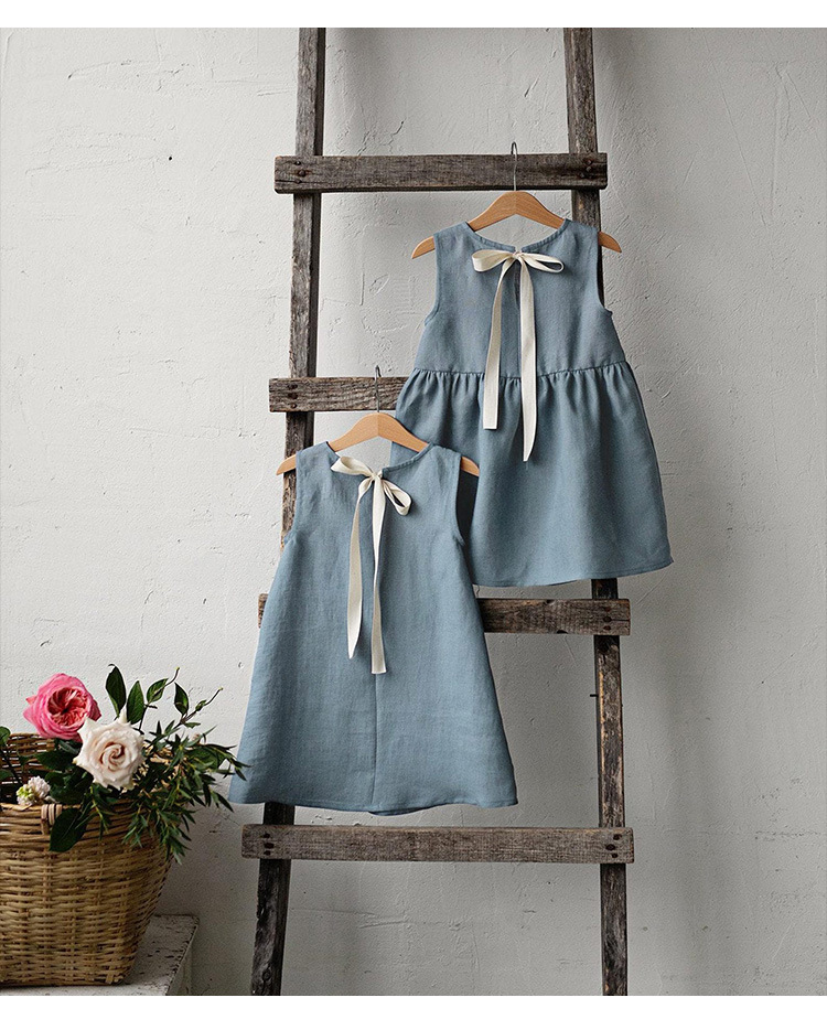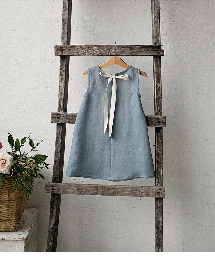 【재고정리】 여아 100% 린넨 민소매 A라인 원피스 리본 장식 여아용 포레스트 스타일 원피스스토어 가기