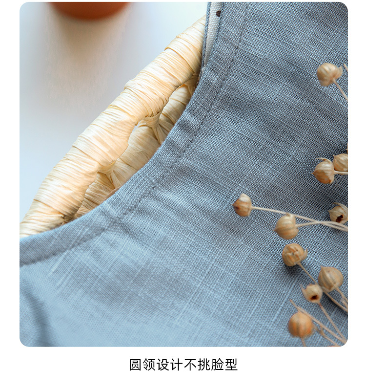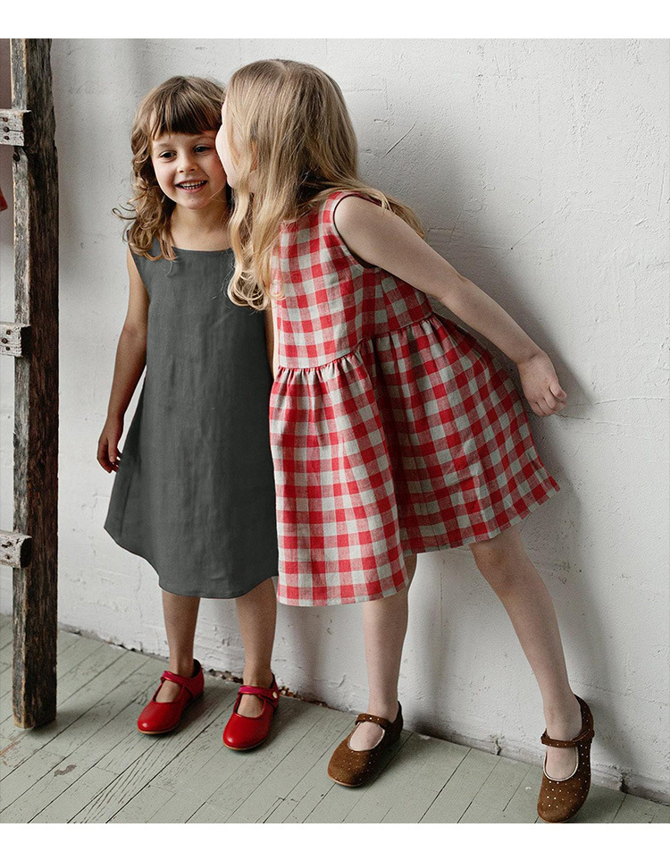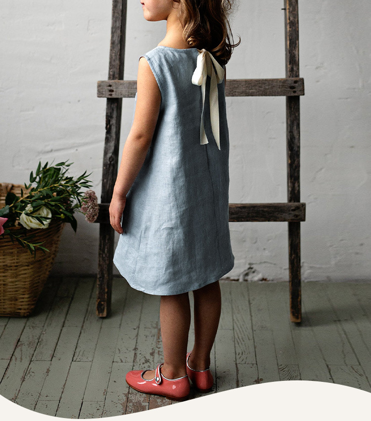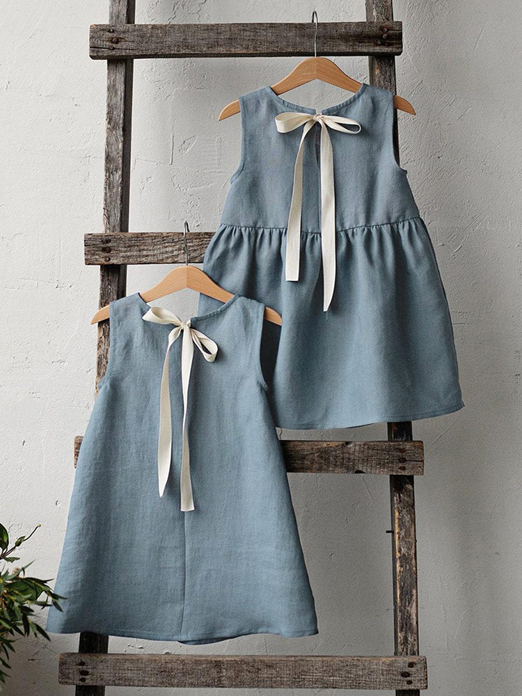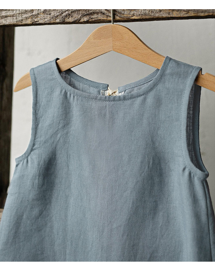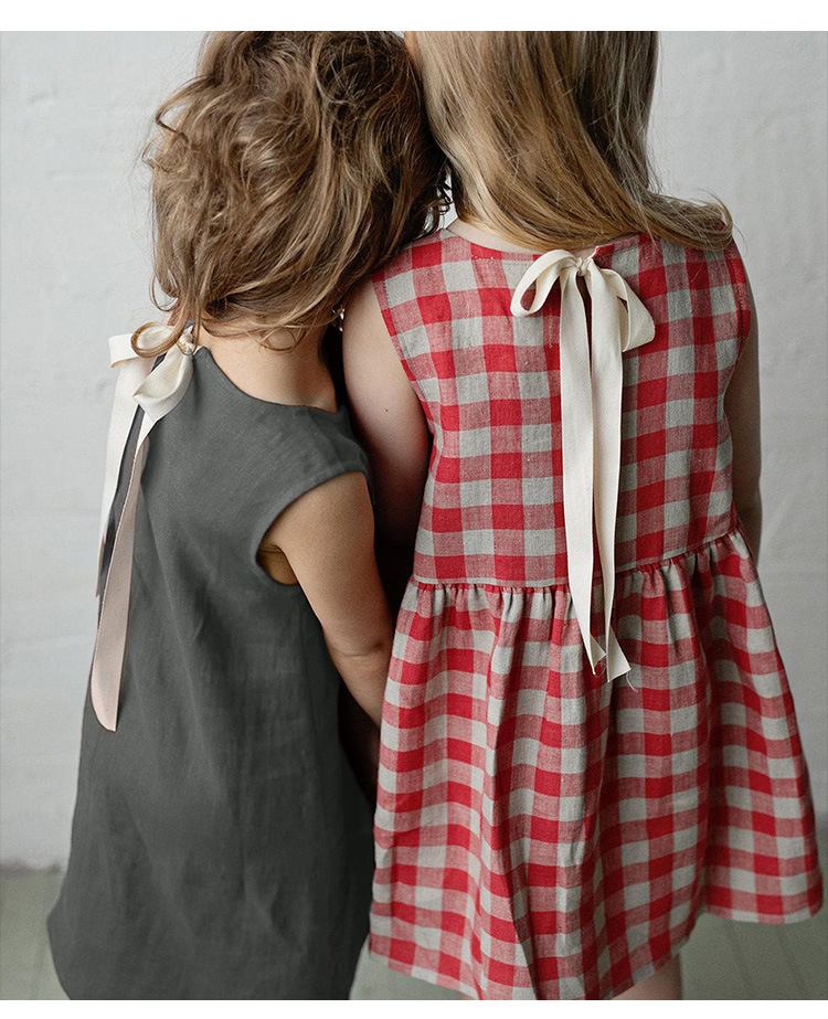 【재고정리】 여아 100% 린넨 민소매 A라인 원피스 리본 장식 여아용 포레스트 스타일 원피스스토어 가기
