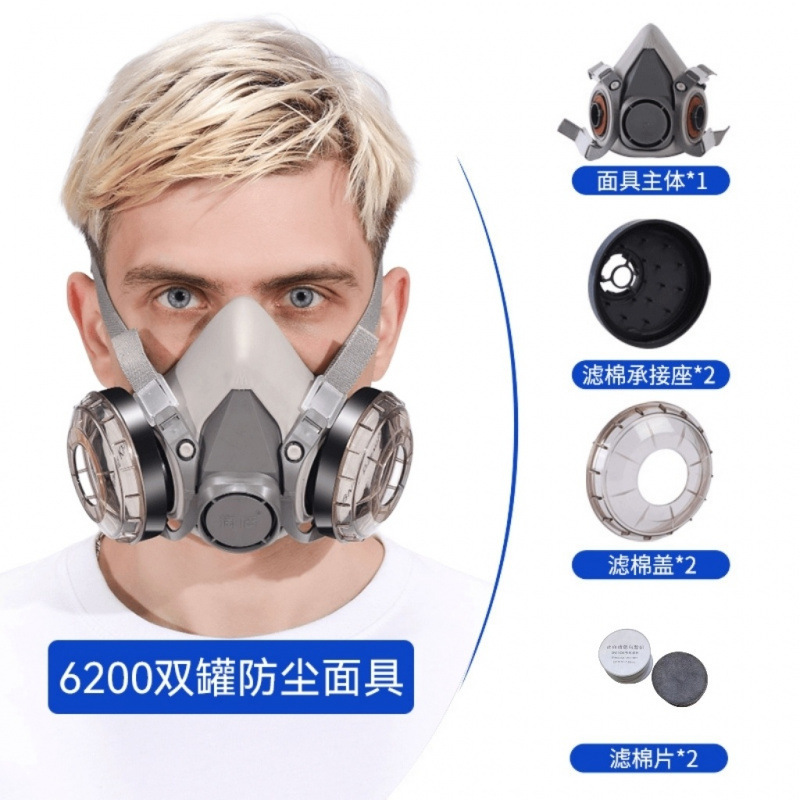 6200防尘口罩7502硅胶工业粉尘面罩打磨电焊化工透气易清洗口鼻罩