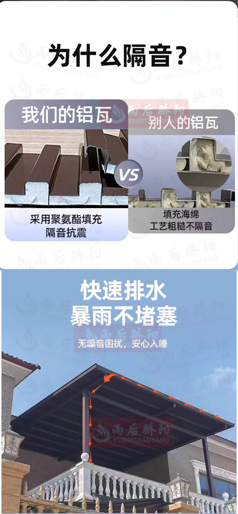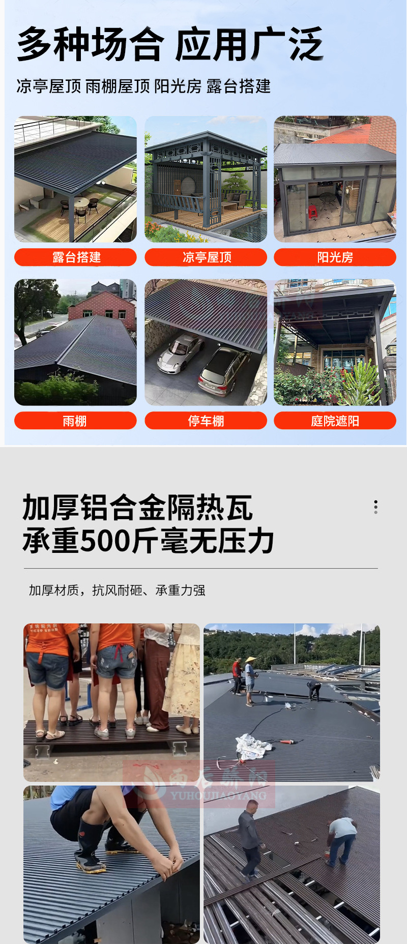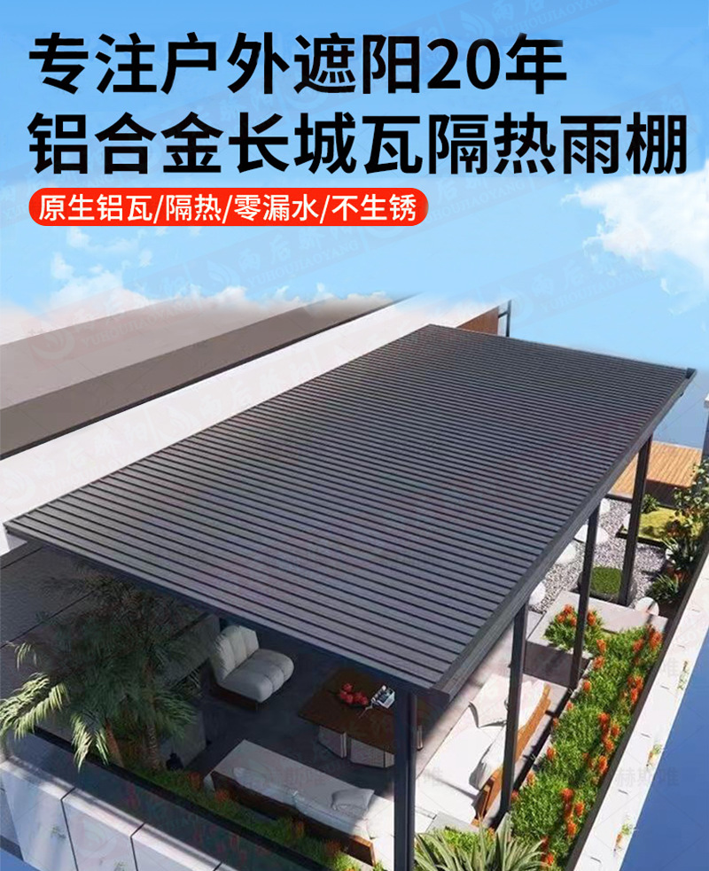 长城隔热铝瓦雨棚 阳台庭院露台遮雨棚户外铝合金长城板遮阳棚