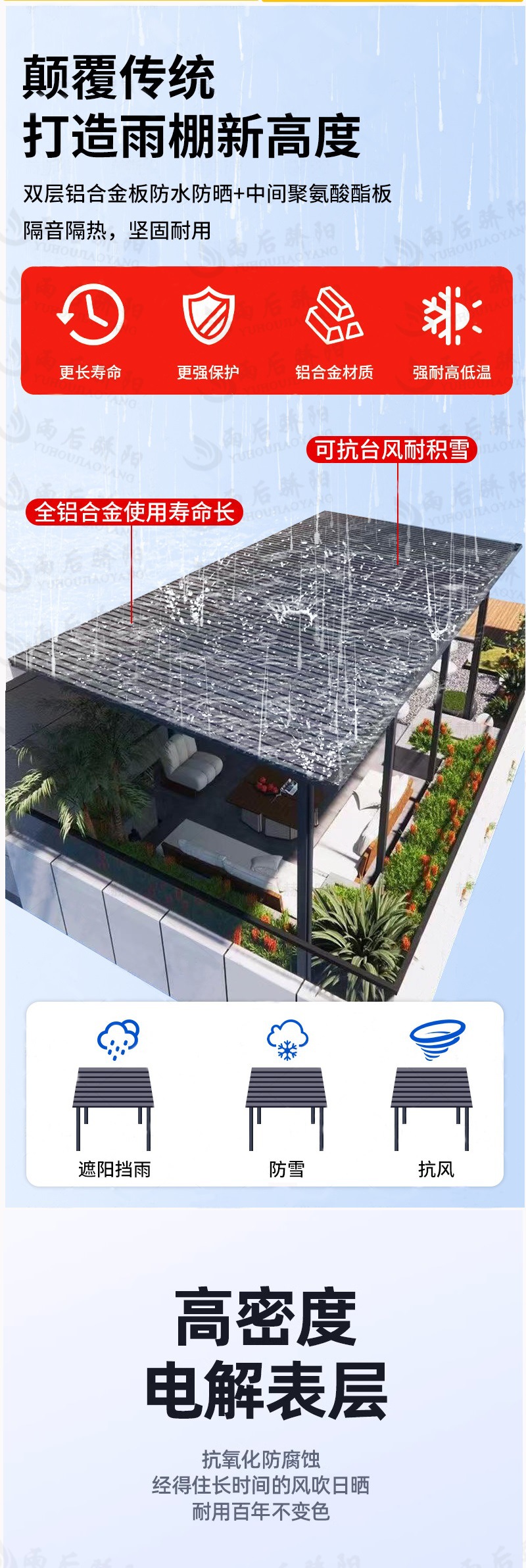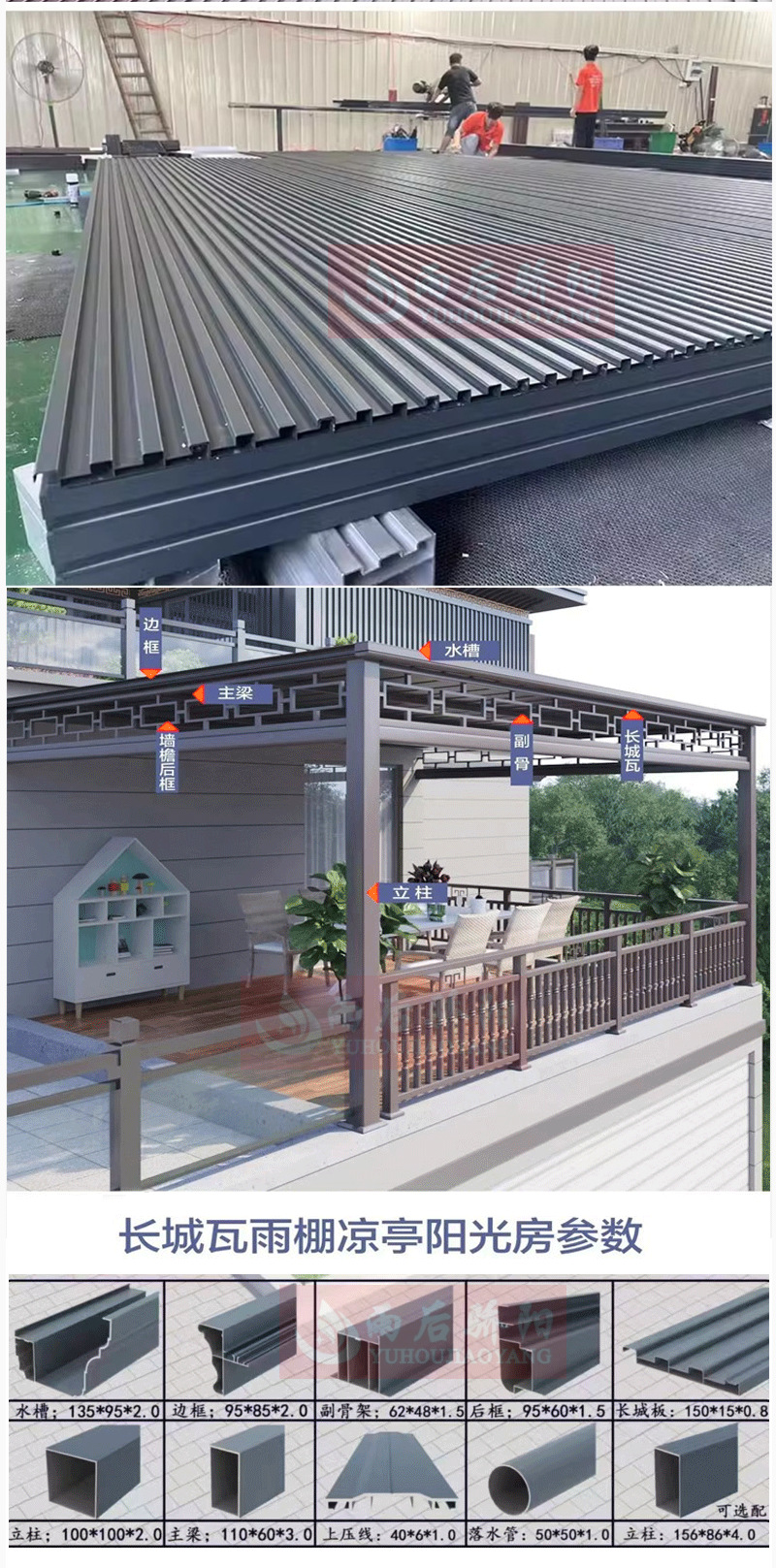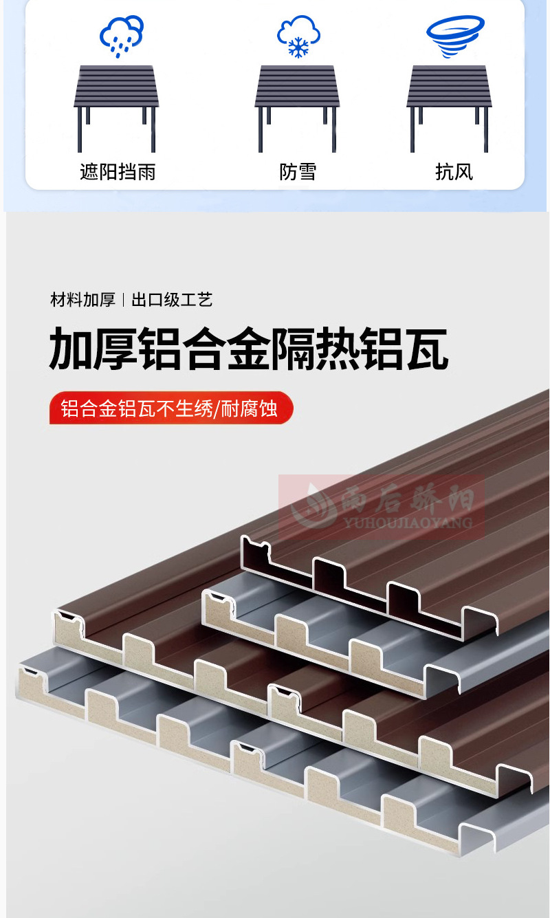 长城隔热铝瓦雨棚 阳台庭院露台遮雨棚户外铝合金长城板遮阳棚