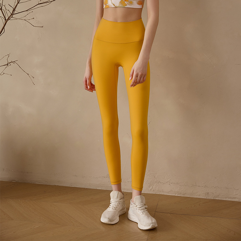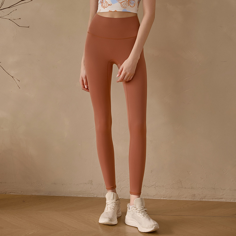 룰루 누드 스타일 여성용 복부 조절 요가 팬츠, 하이웨이스트 스포츠 피부 친화적인 아우터웨어 피트니스 팬츠, 당황스러운 라인이 없는 타이트한 레깅스