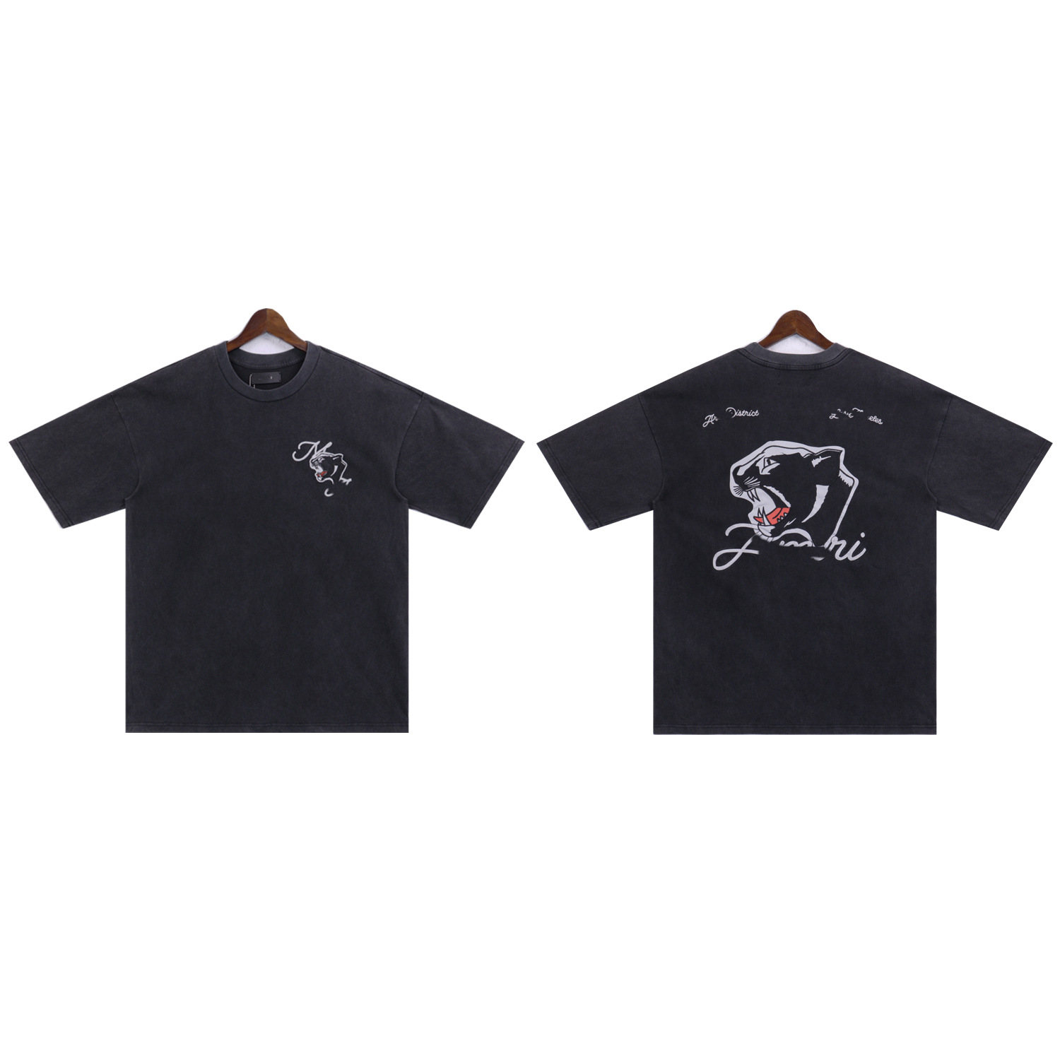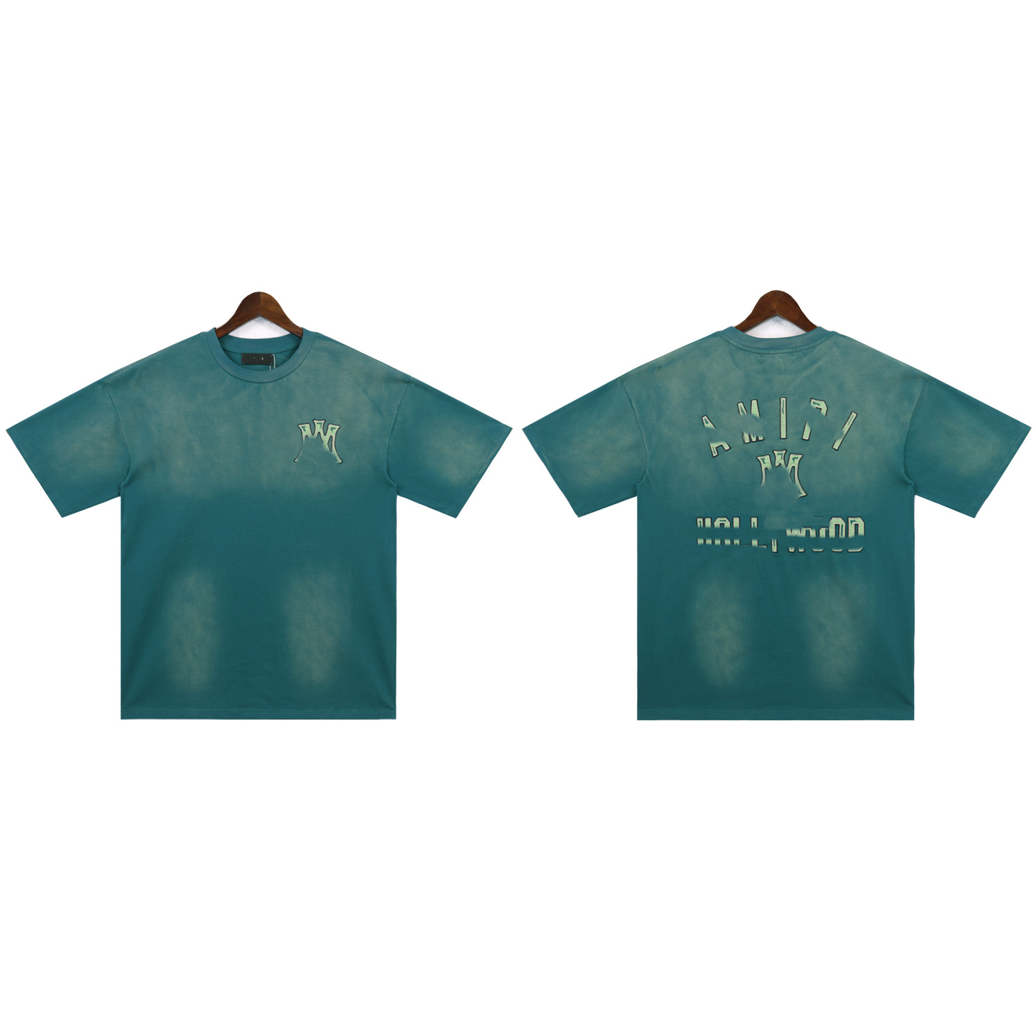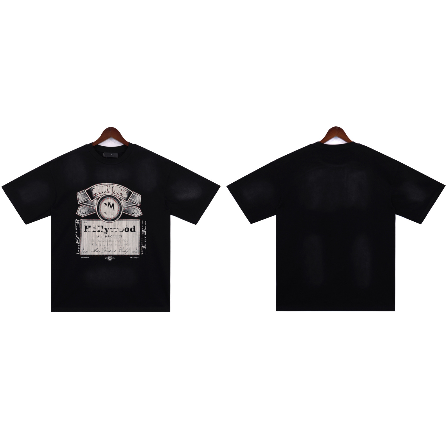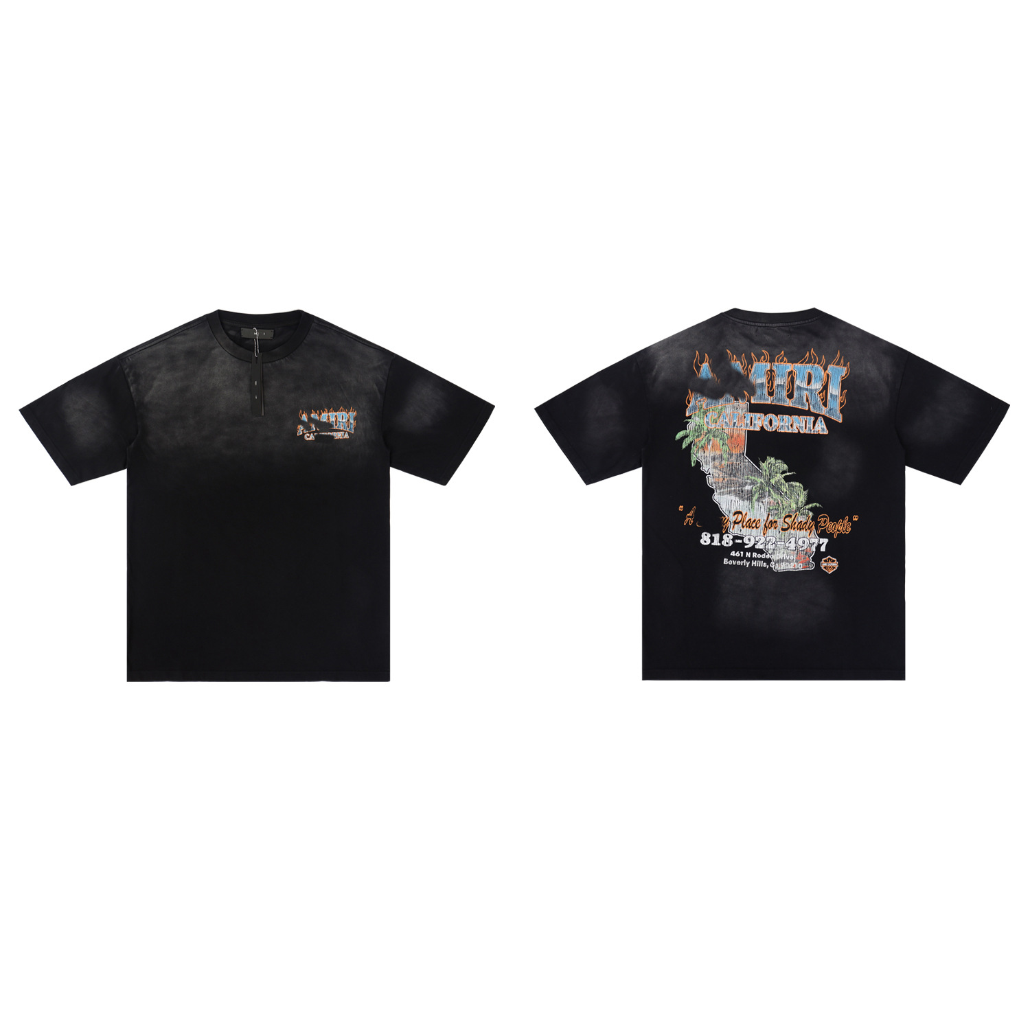 2025 새로운 미국 티셔츠 여름 워시 프린트 남성 루즈 라운드 넥 반팔 유럽과 미국의 트렌디 한 브랜드 반팔 전체 시리즈