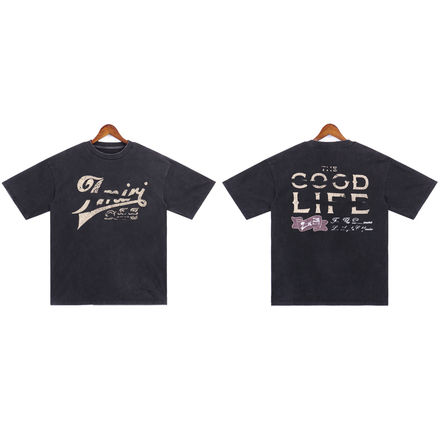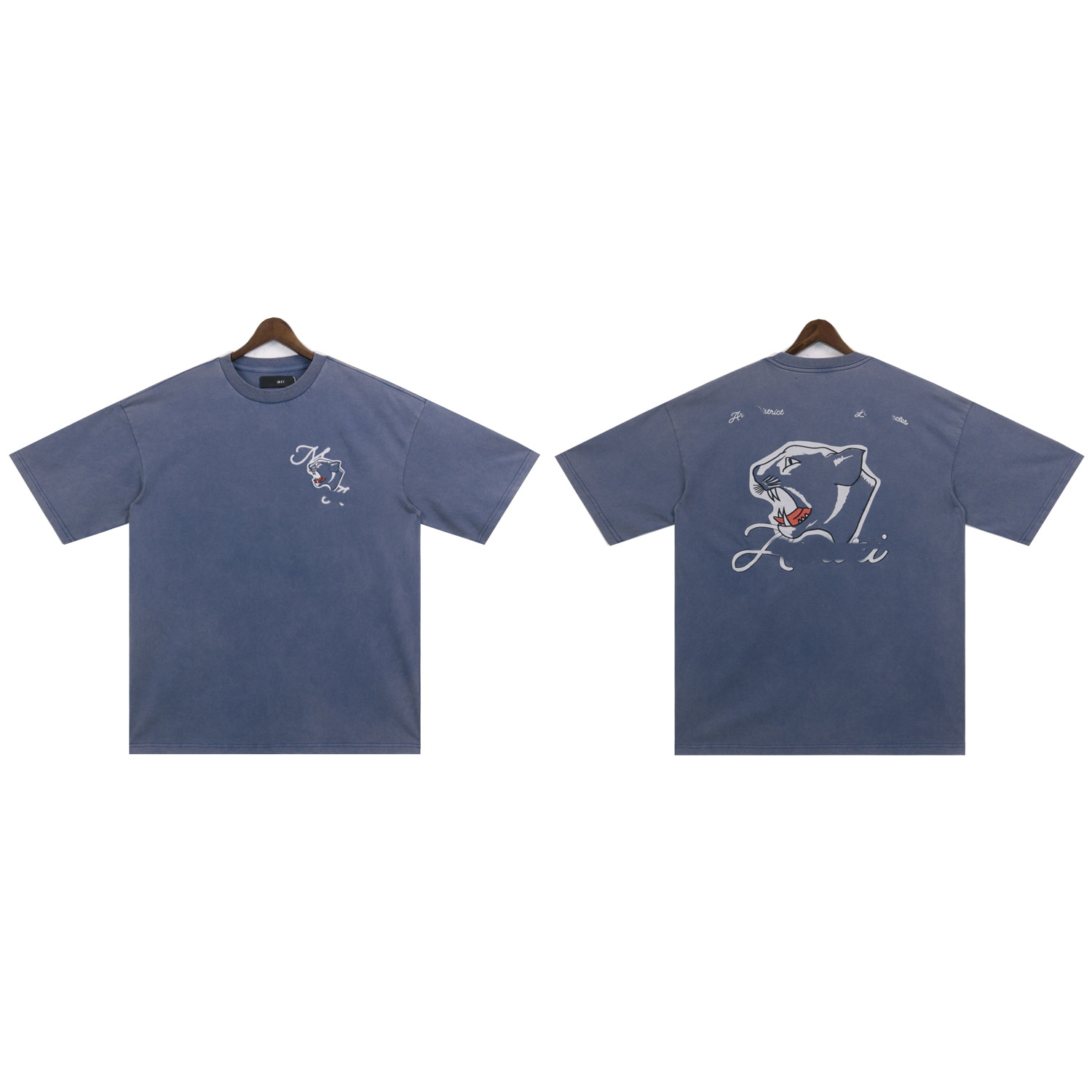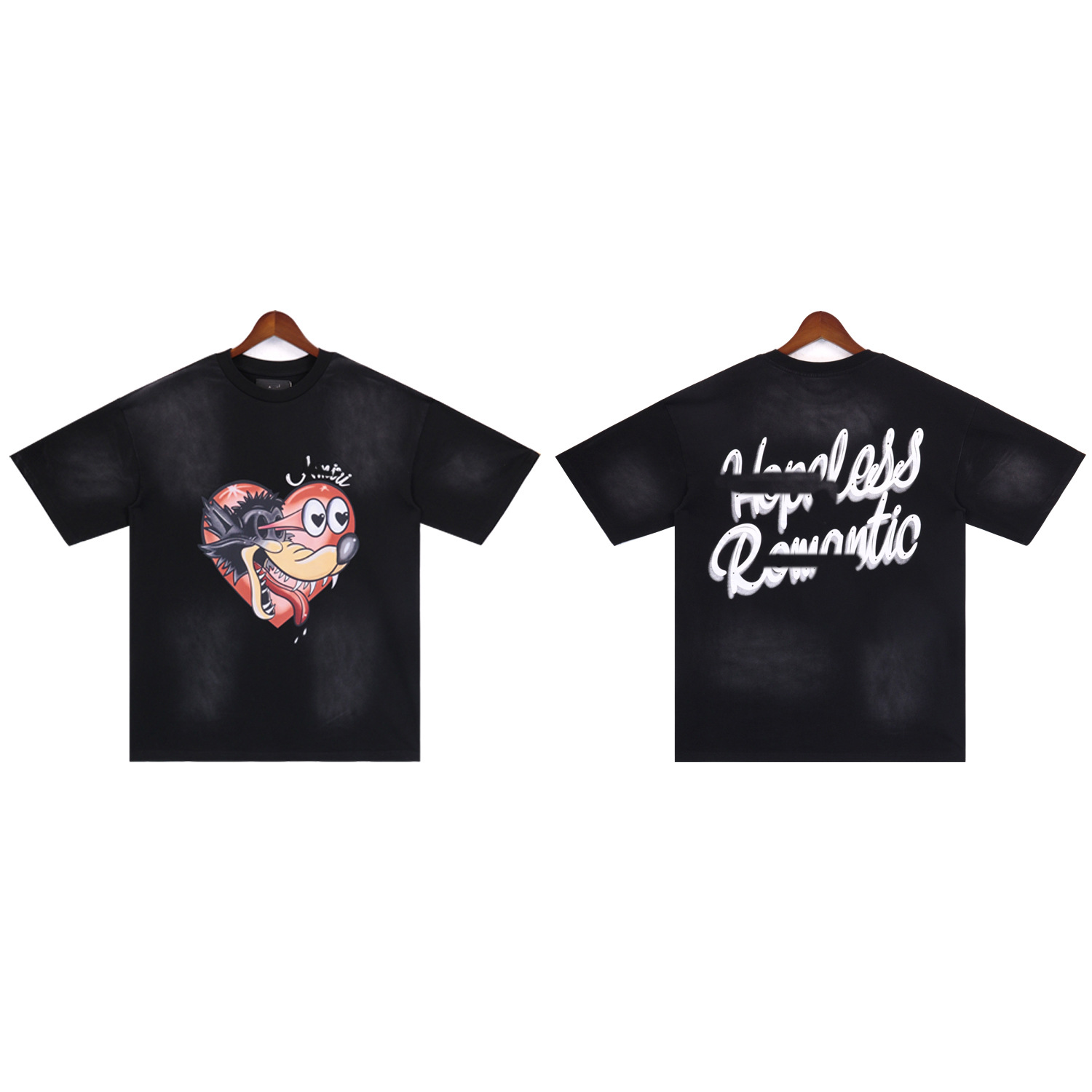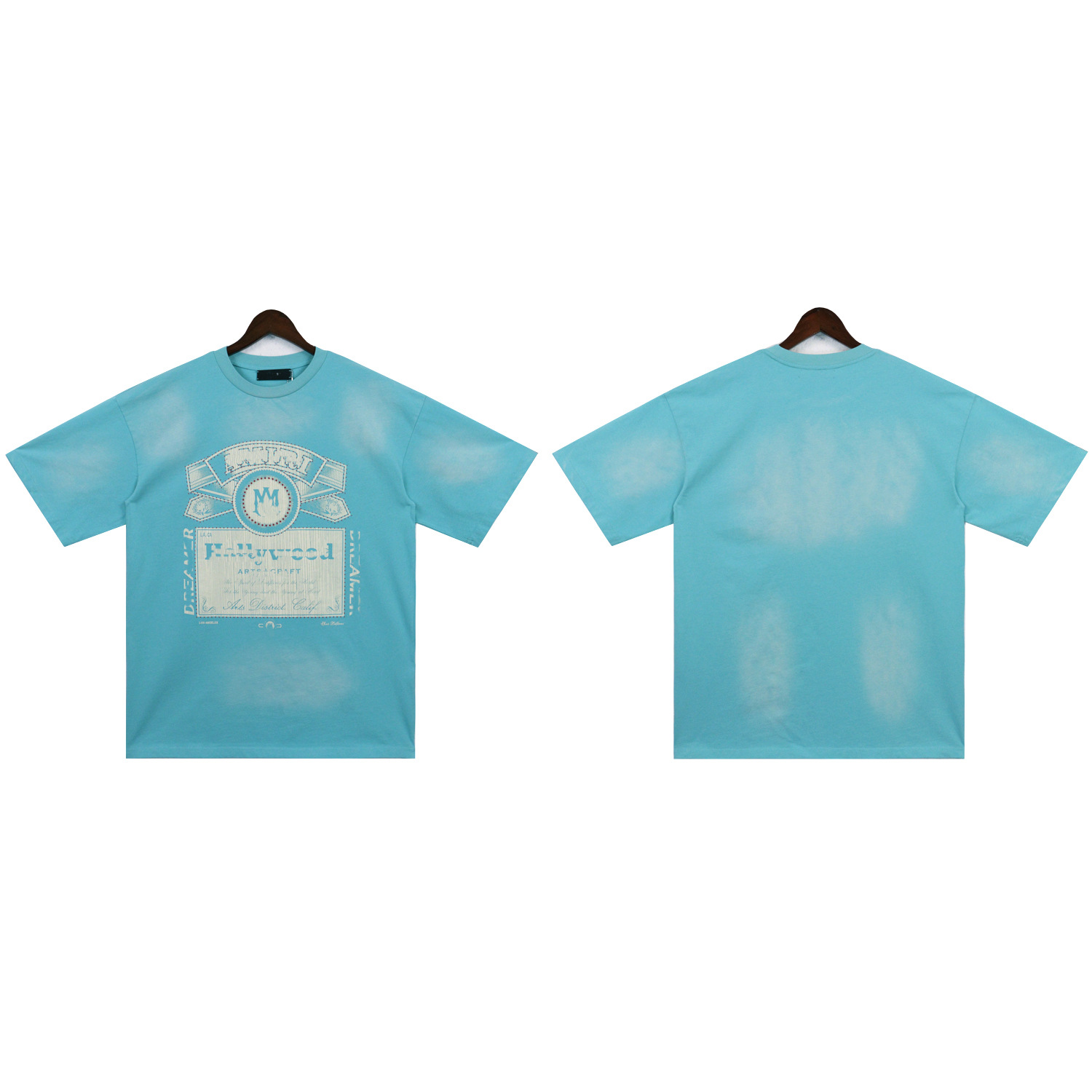 2025 새로운 미국 티셔츠 여름 워시 프린트 남성 루즈 라운드 넥 반팔 유럽과 미국의 트렌디 한 브랜드 반팔 전체 시리즈