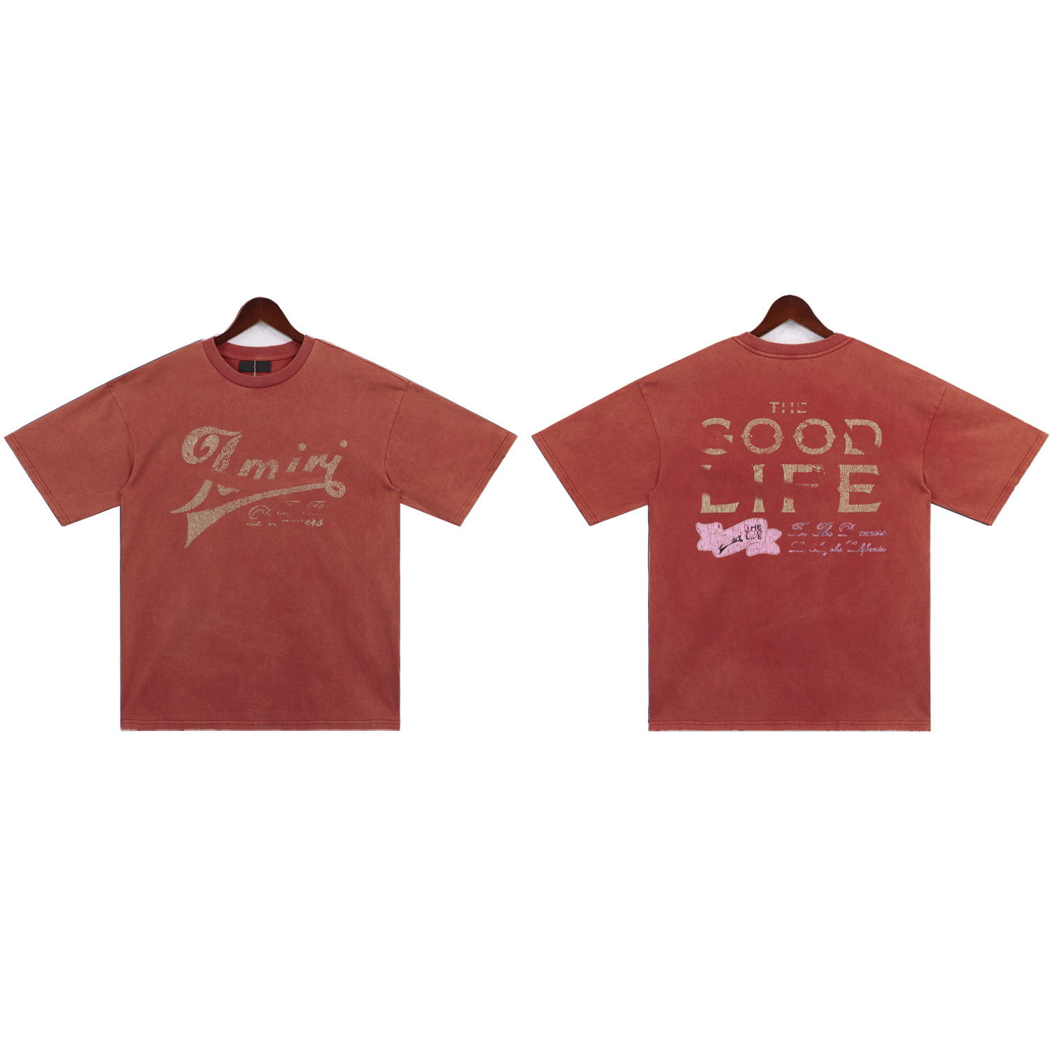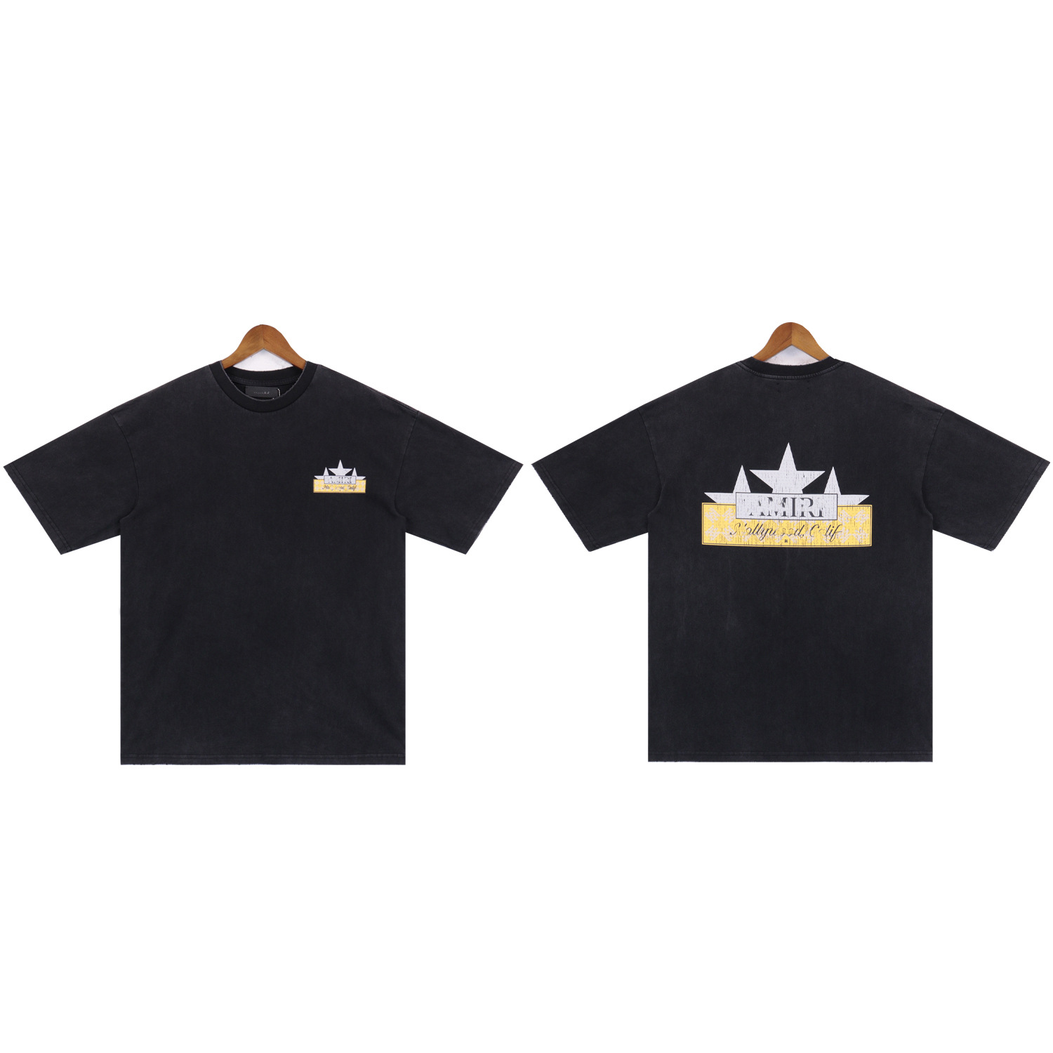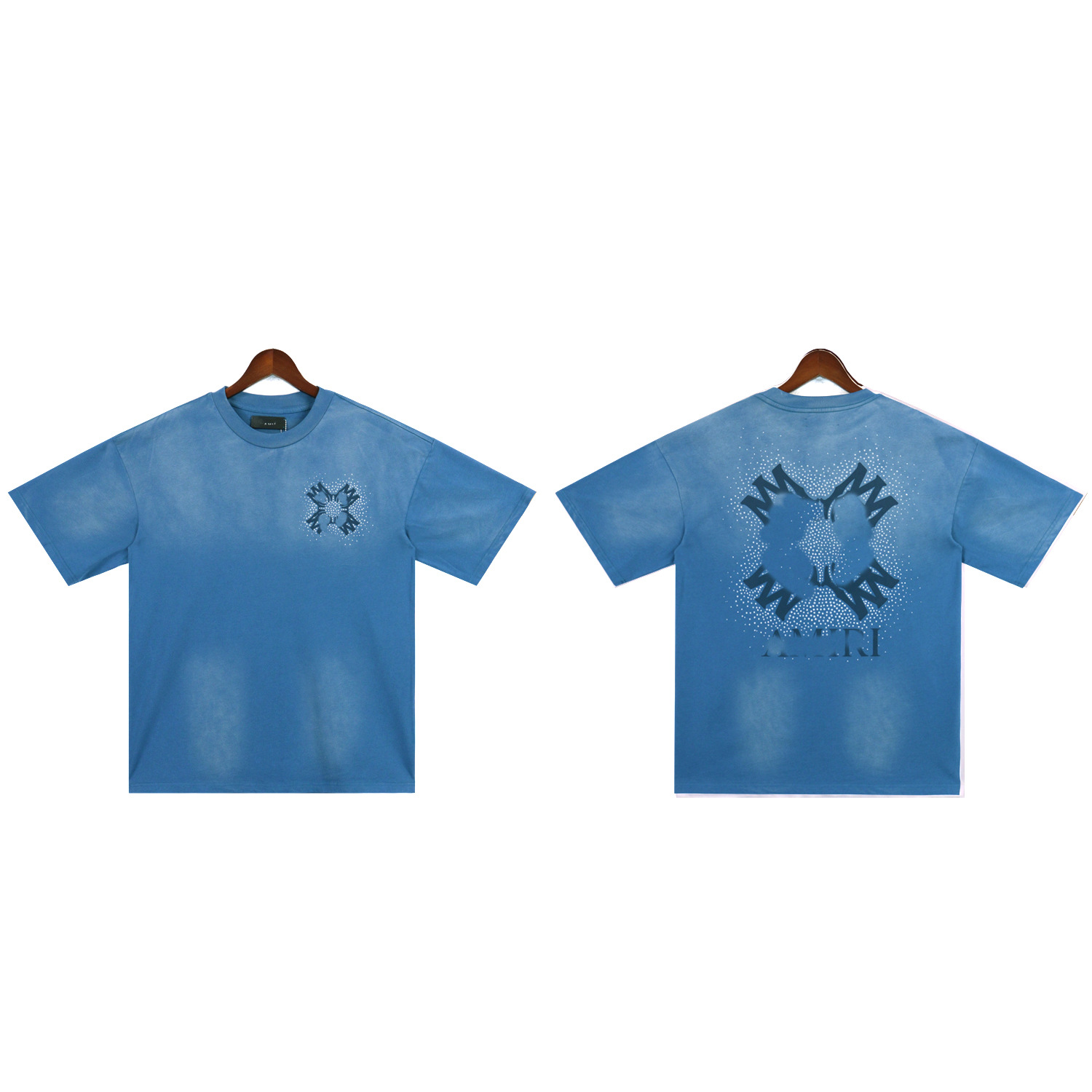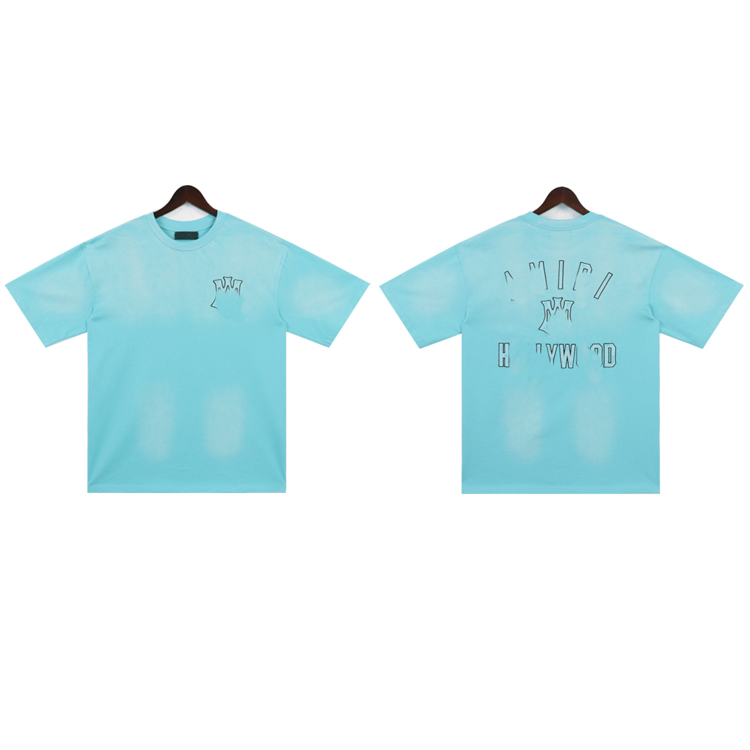 2025 새로운 미국 티셔츠 여름 워시 프린트 남성 루즈 라운드 넥 반팔 유럽과 미국의 트렌디 한 브랜드 반팔 전체 시리즈