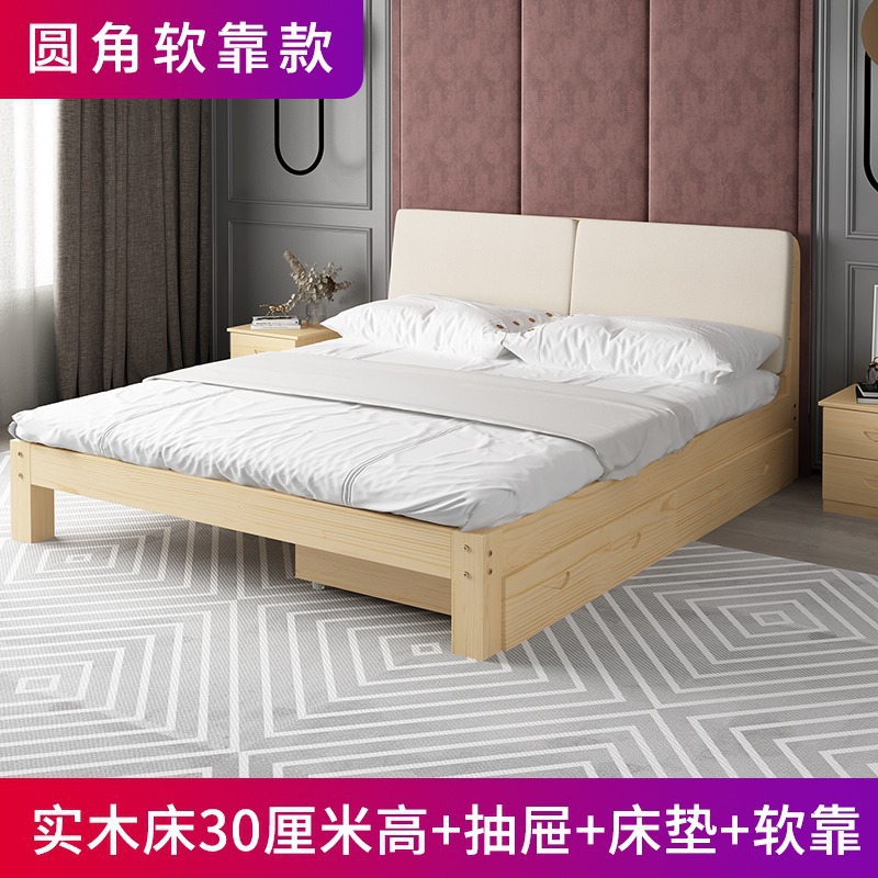 원목 침대 1.5m 소나무 침대 경제적인 더블 침대 모던 심플 임대 침대 심플 싱글 침대 침대 프레임