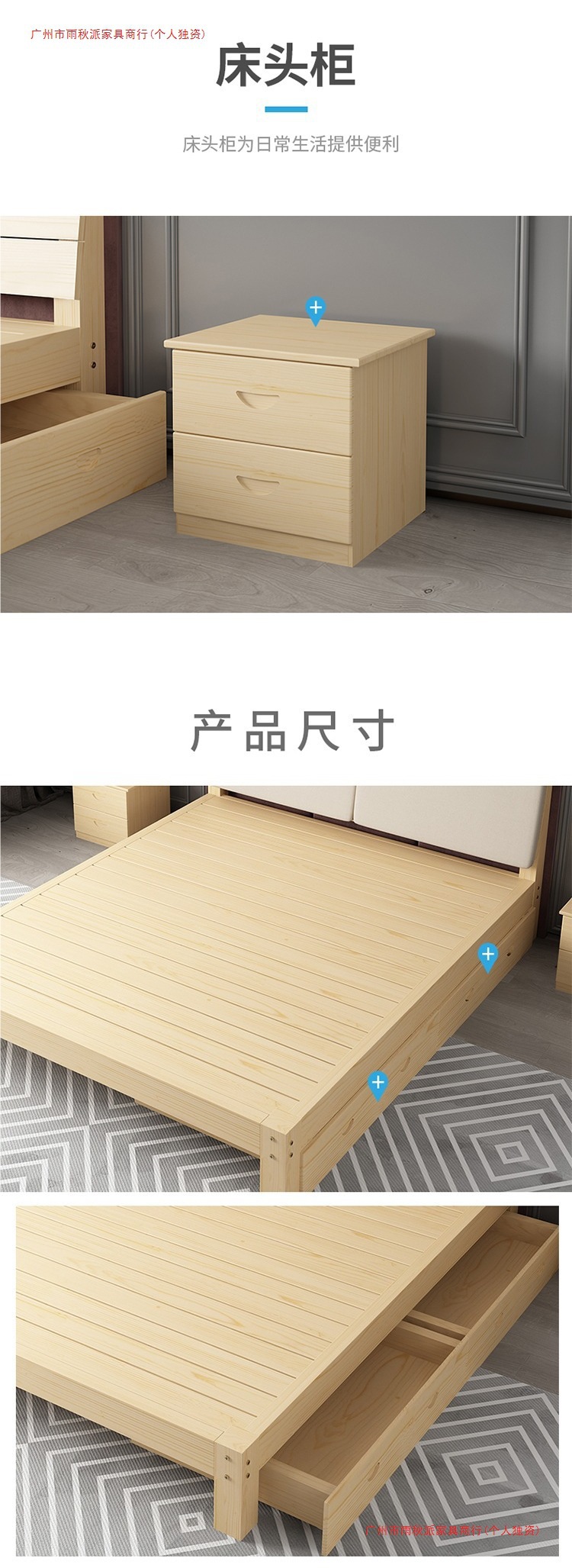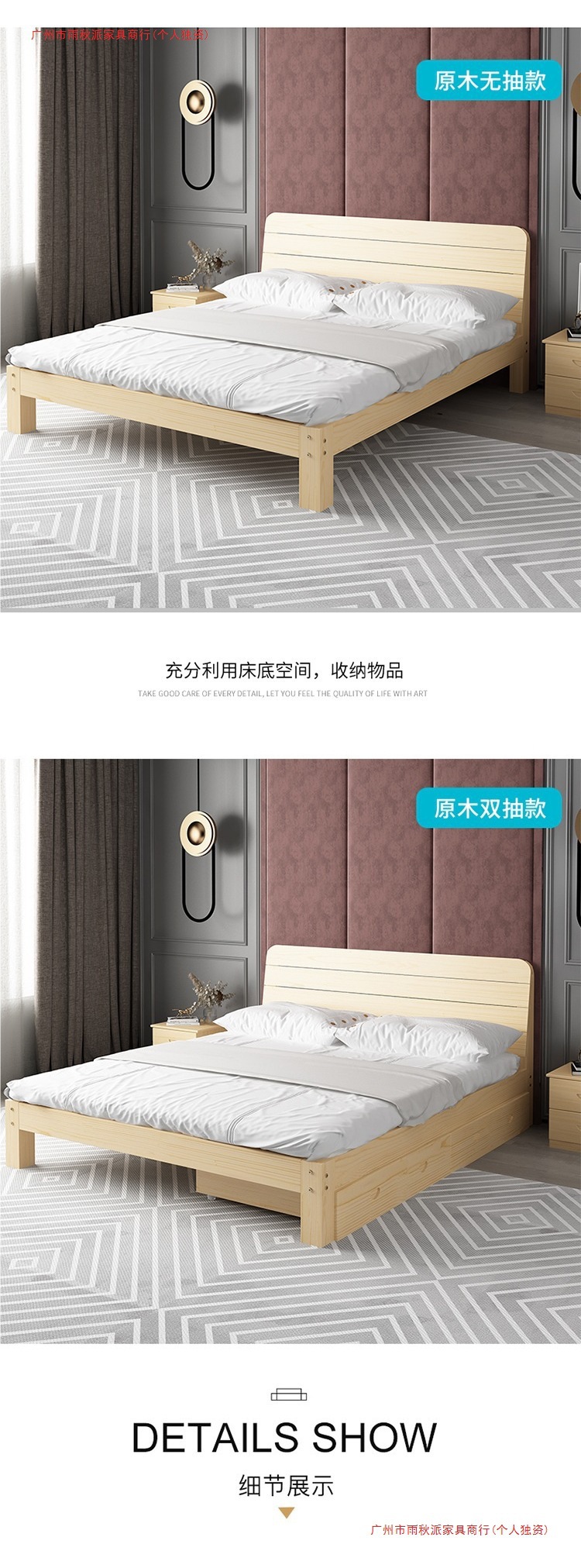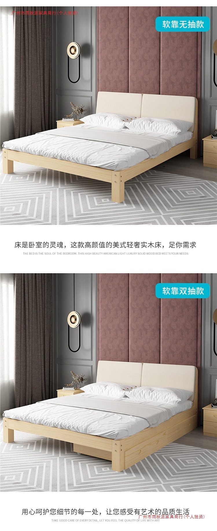 • 원목 침대 높이 30 + 서랍 + 매트리스 + 푹신한 등받이