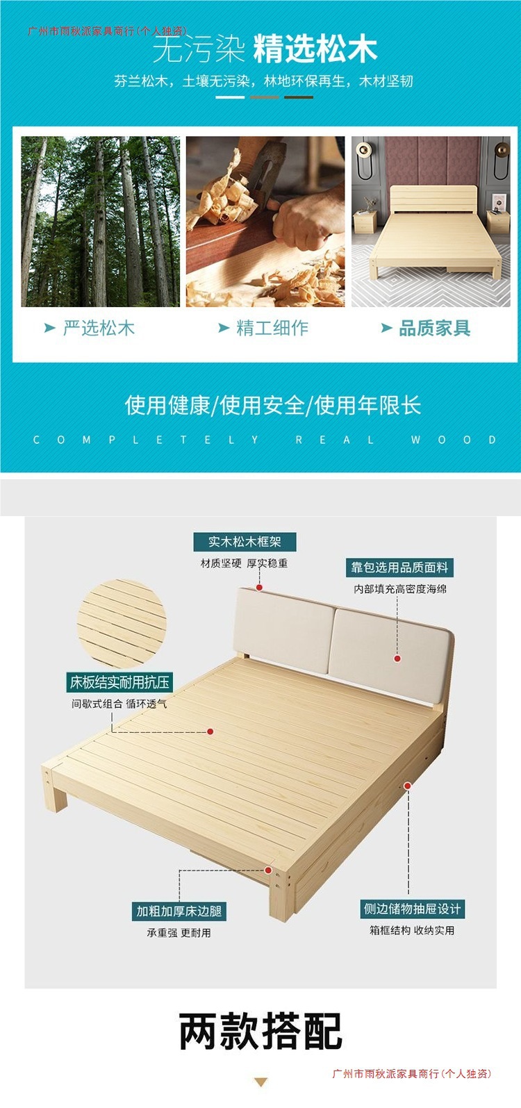 • 원목 침대 30cm 높이 + 서랍 + 부드러운 등받이