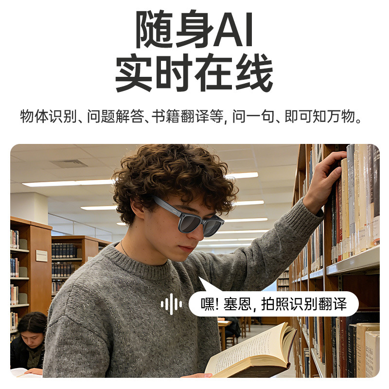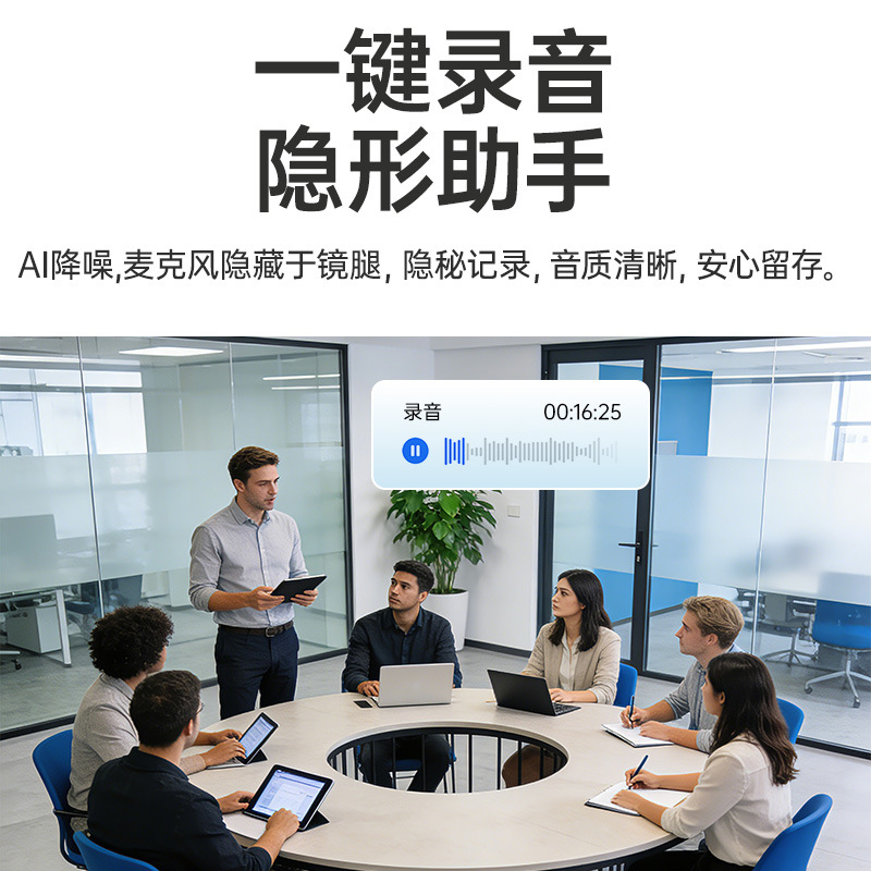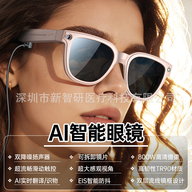 새로운 8백만 픽셀 AI 인공 다기능 스마트 블루투스 안경, 카메라 녹화 기능 포함, 사진 및 녹음 촬영 가능