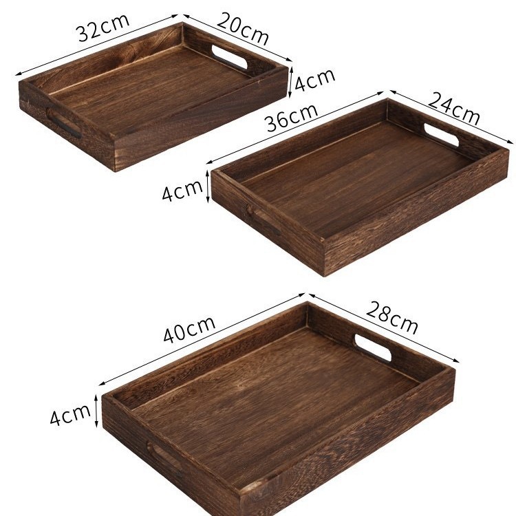 나무 트레이 사진 소품 스테이크 디너 플레이트 아침 식사 플레이트 직사각형 복고풍 빵 디저트 스낵 단단한 나무 디너 플레이트