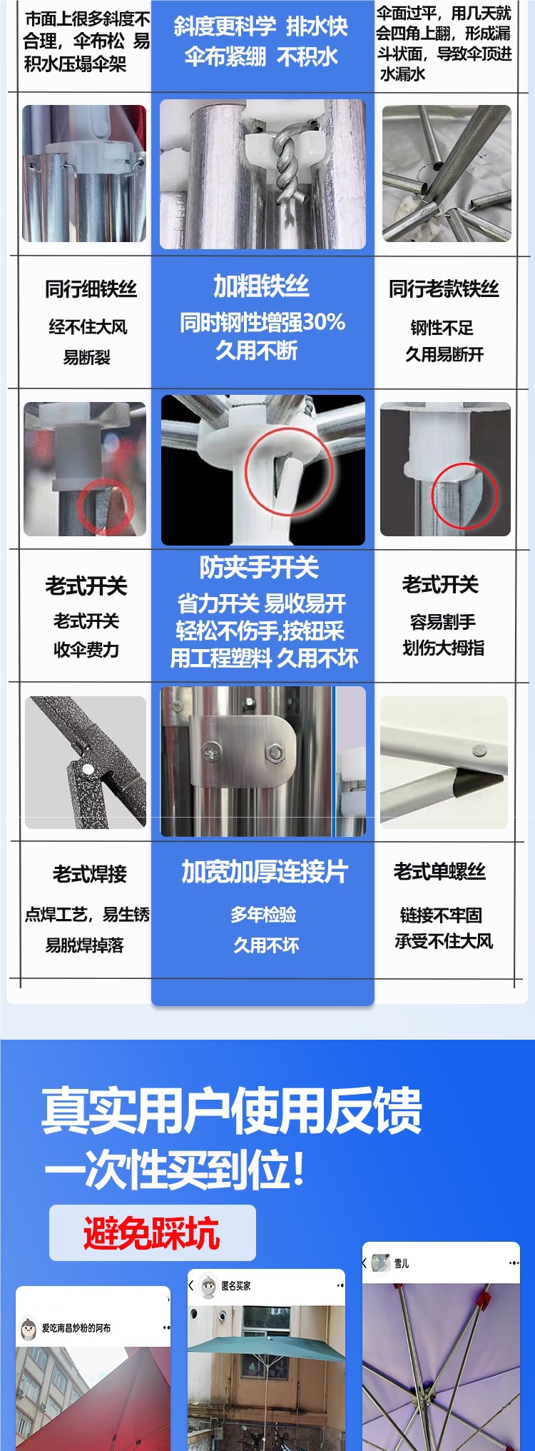 • ([경사우산] 파란색 4X2 두꺼워진 6개 갈비뼈 + 접이식 베이스(경사면이 좁음))