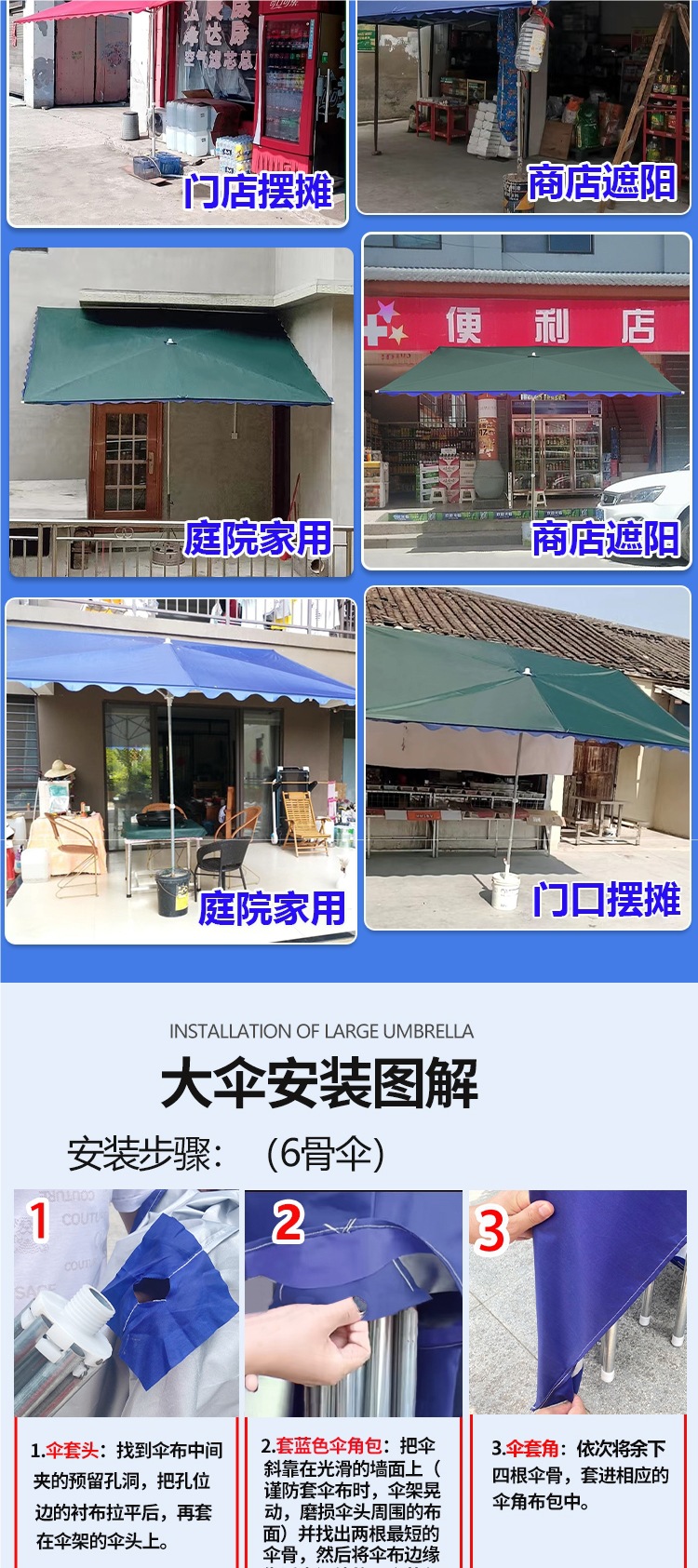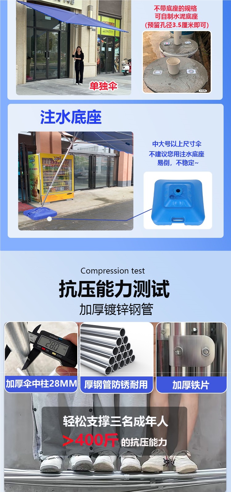 • ([경사우산] 파란색 4X3 두꺼운 6개 갈비뼈 + 접이식 베이스 (대형우산, 힘이 약해서 촬영시 주의하세요))