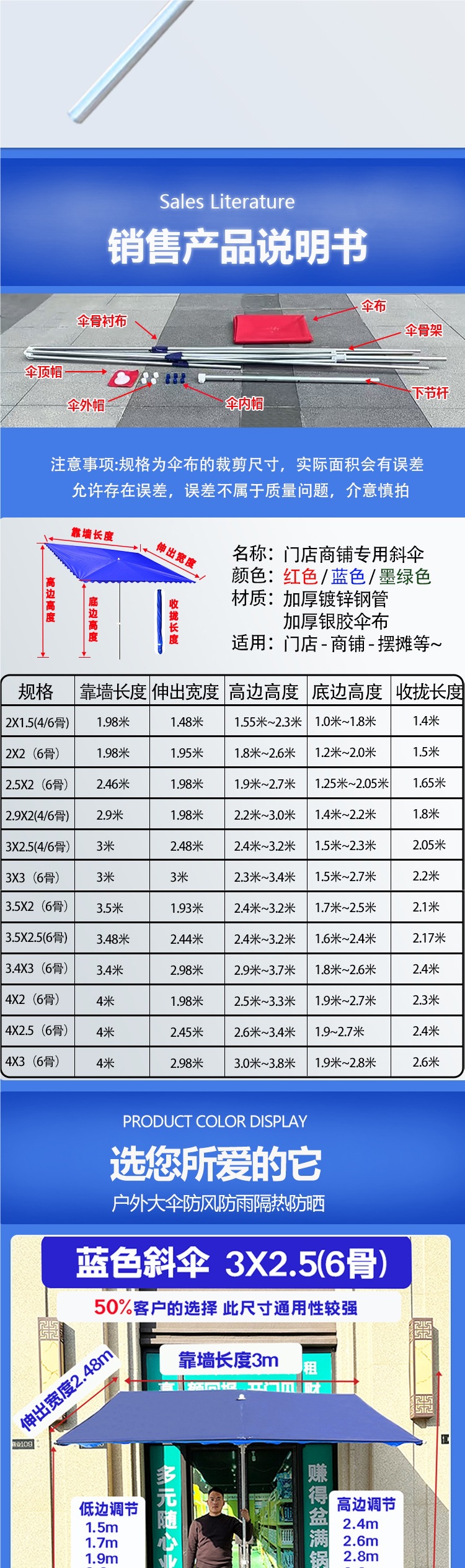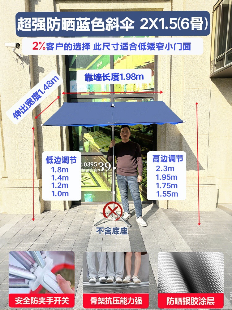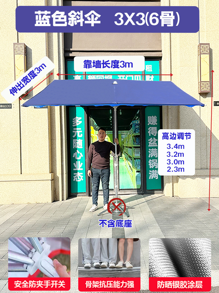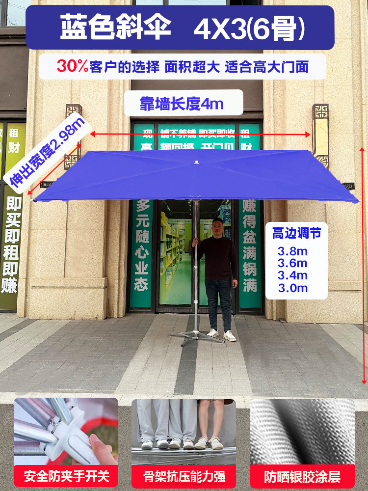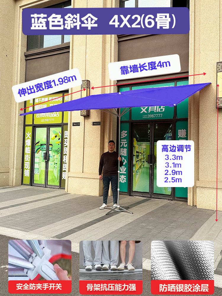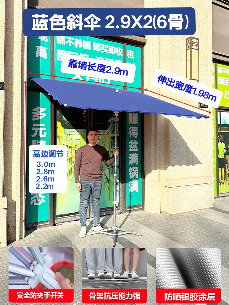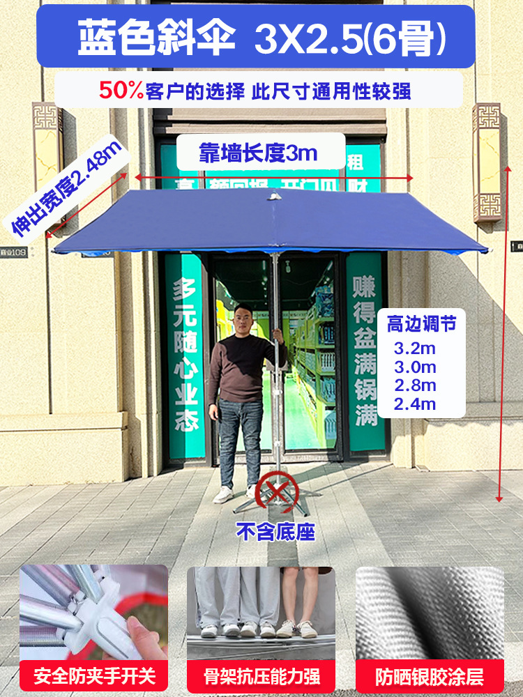 • ([경사우산] 블루 3X2.5 두꺼운 6개 갈비 + 접이식 베이스 (점주 추천))