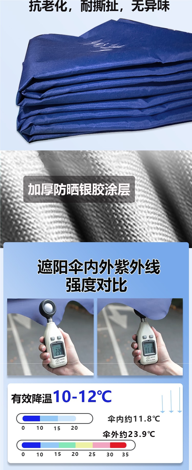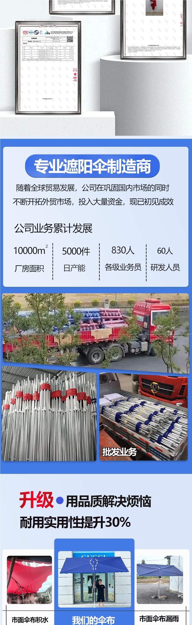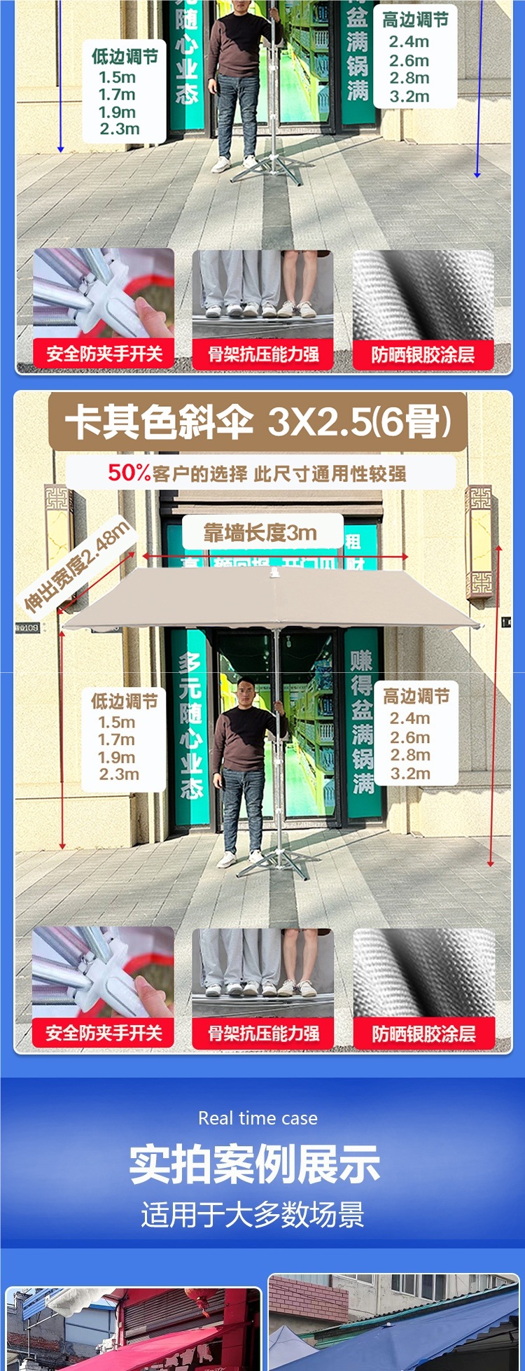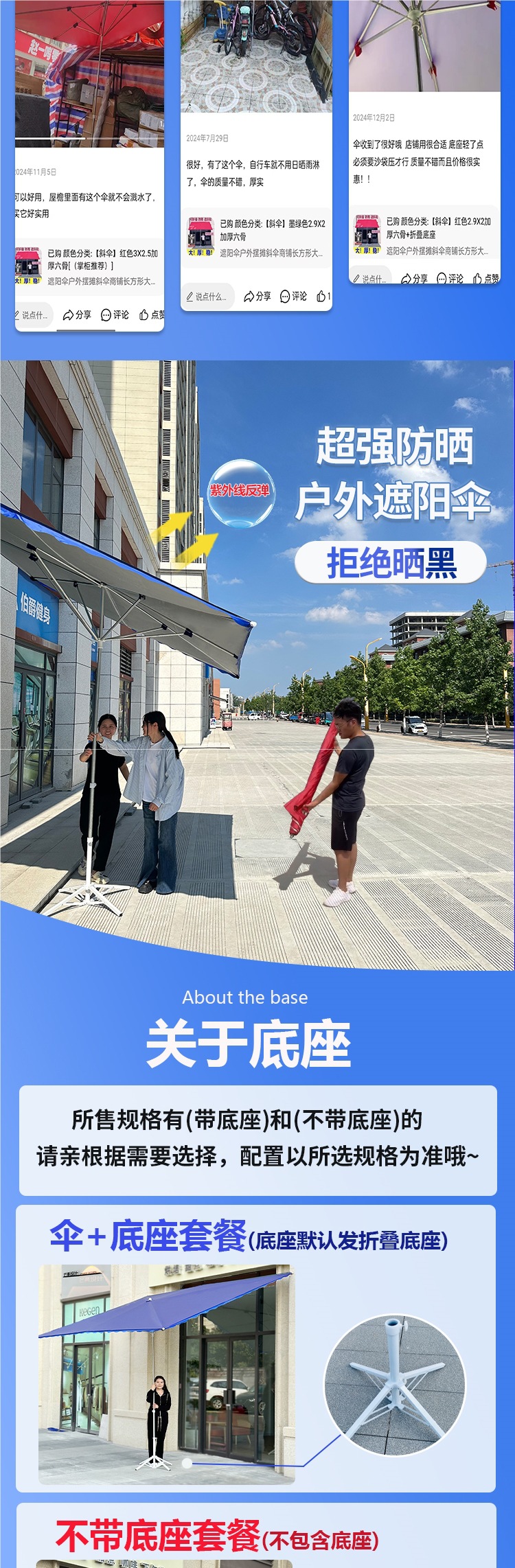 • ([경사우산] 블루 3X2.5 두꺼운 6개 갈비 + 접이식 베이스 (점주 추천))