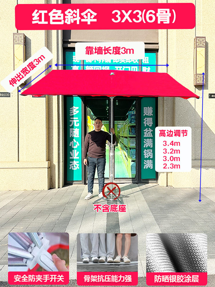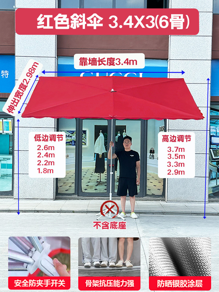 • ([경사우산] 레드 3.4X3 두꺼운 6갈비 + 접이식 베이스)