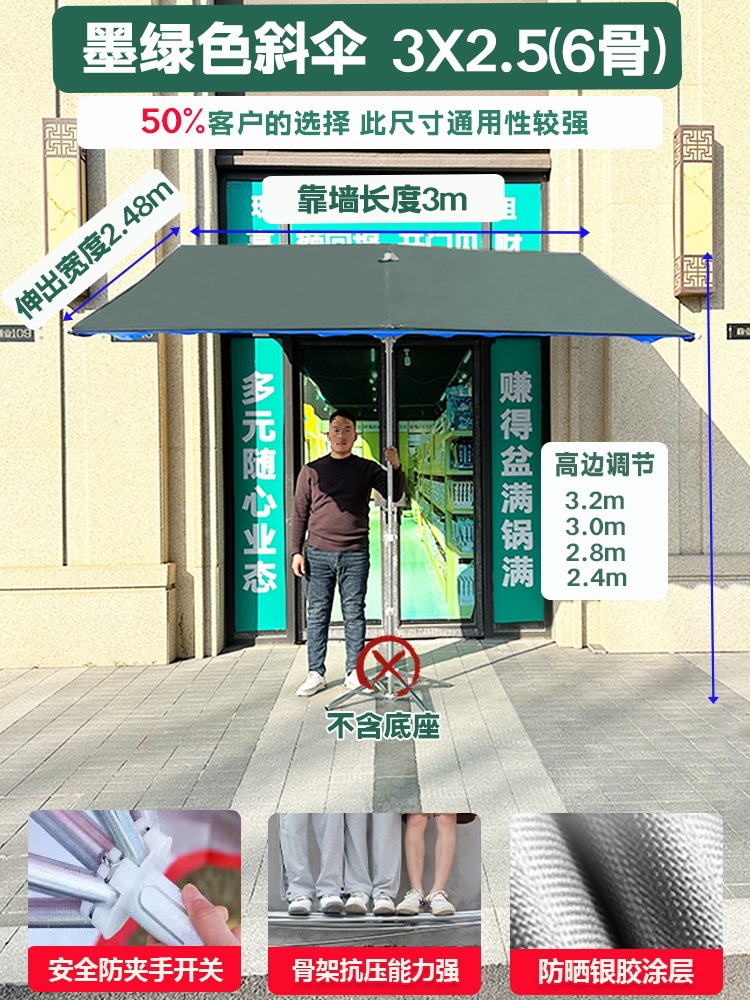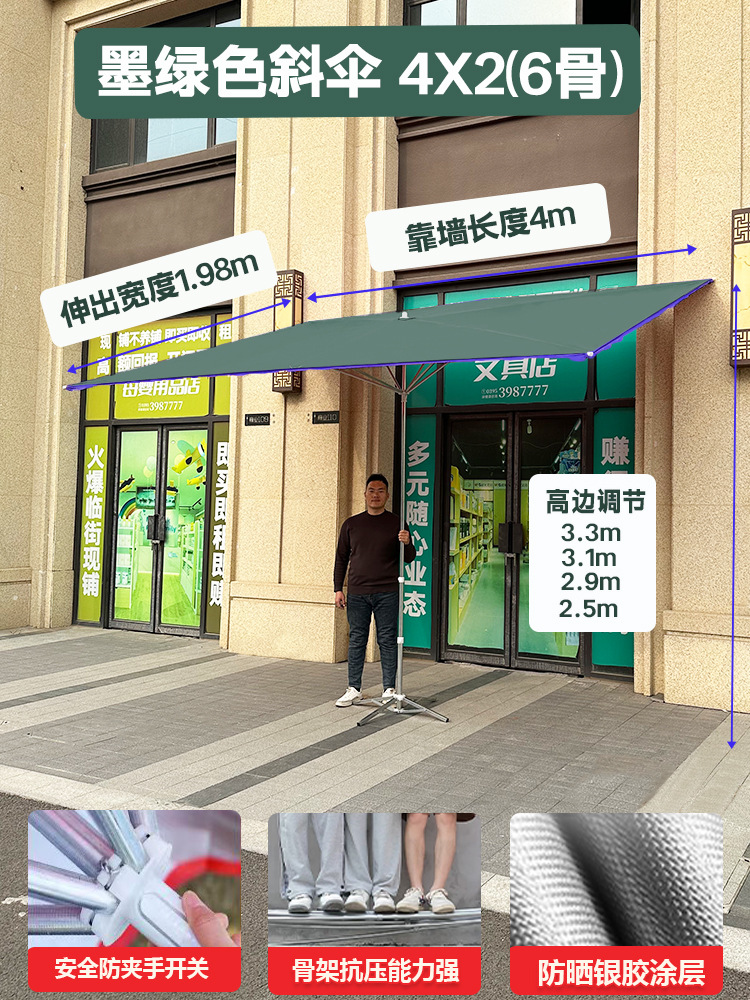 • ([경사우산] 짙은 녹색 2X1.5 두꺼운 4개 갈비 + 접이식 베이스(우산))