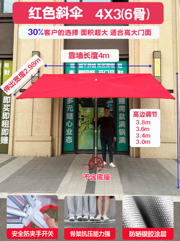 • ([경사우산] 레드 3X2.5 두꺼운 6갈비 + 접이식 베이스 (점주 추천))