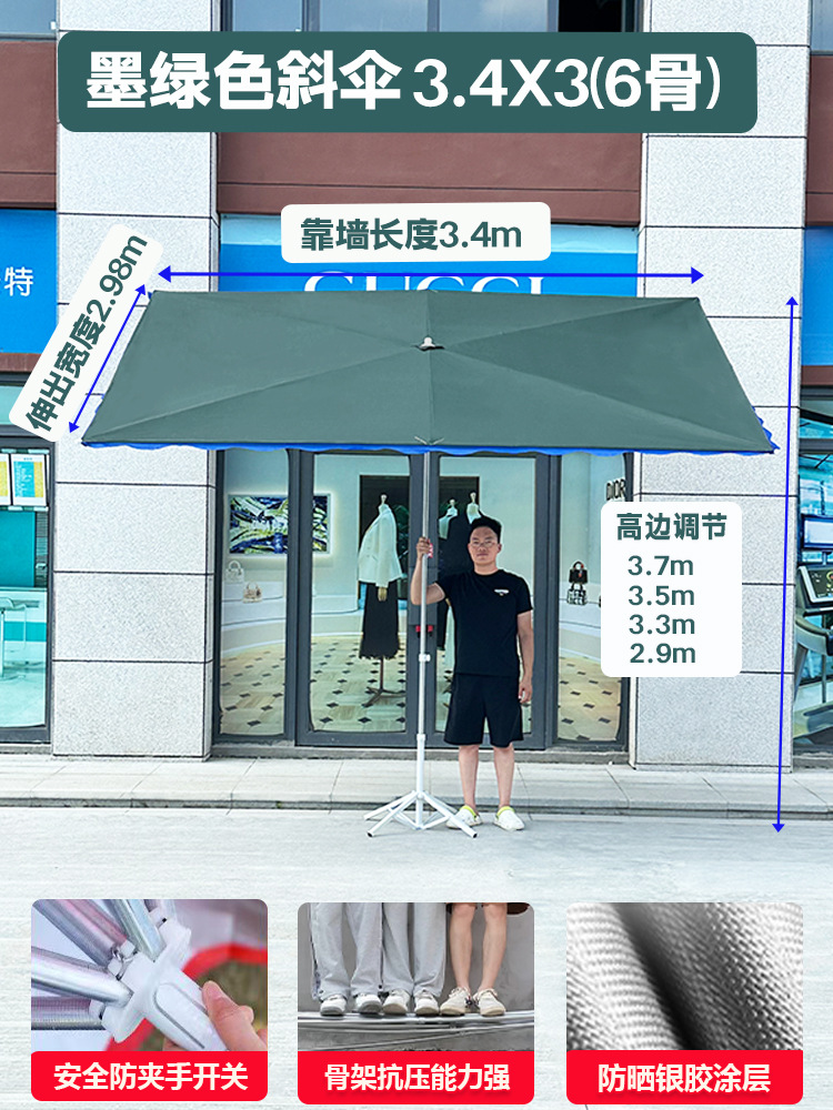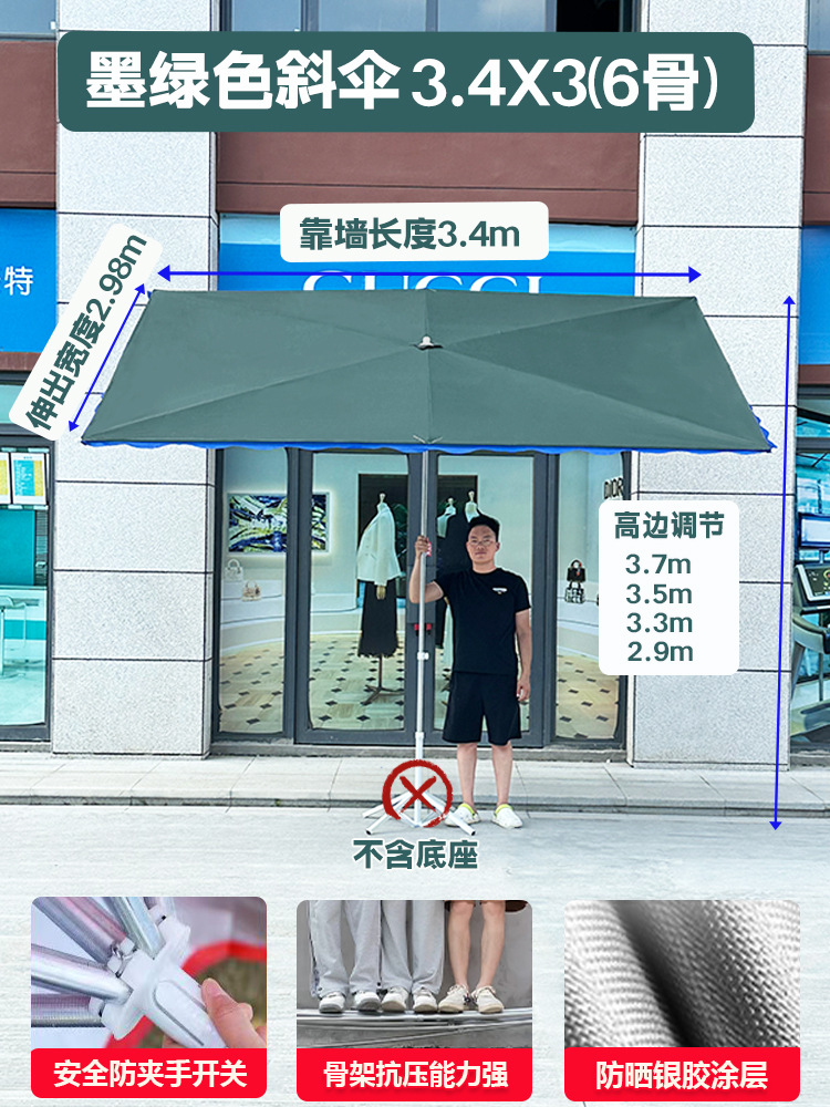 • ([경사우산] 다크그린 3.4X3 두꺼운 6갈비 + 접이식 베이스)