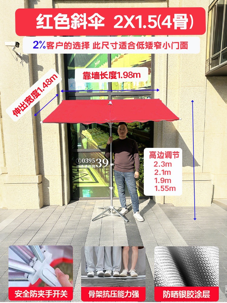 • ([경사우산] 레드 2X1.5 두꺼운 4갈비 + 접이식 베이스(우산))
