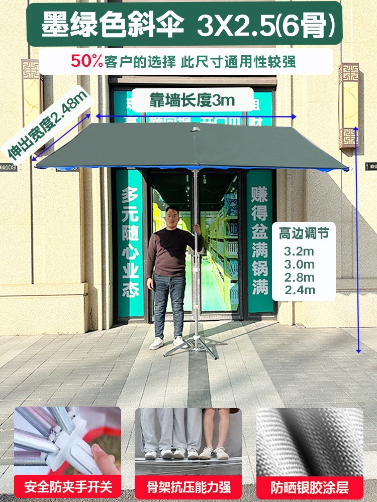 • ([경사우산] 짙은 녹색 3X2.5 두꺼운 6갈비 + 접이식 베이스 (점주 추천))