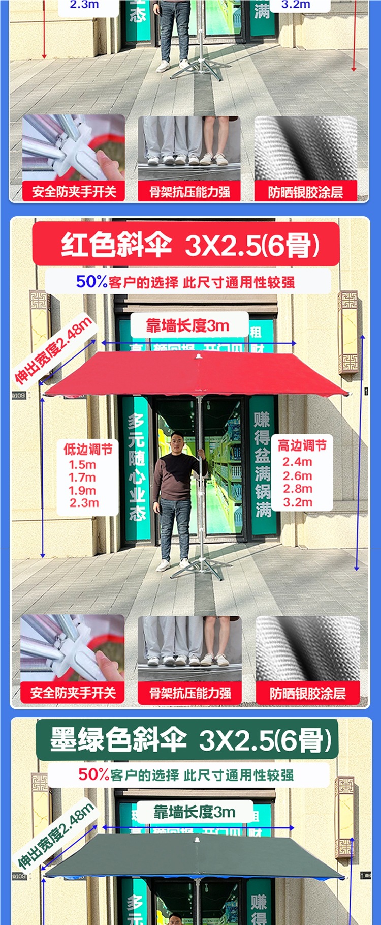 • ([경사우산] 짙은 녹색 4X2 두꺼운 6개 갈비뼈 + 접이식 베이스(경사면이 좁음))