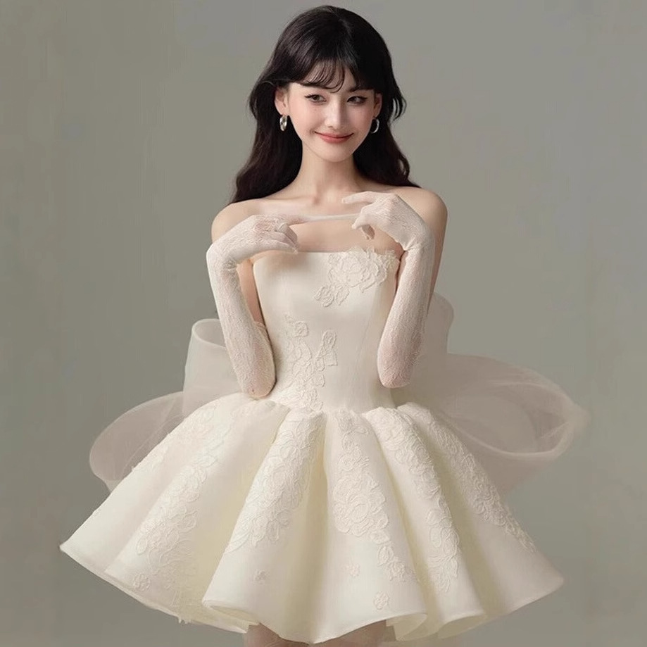 여성용 모닝 가운, 신부 튜브탑, 고급 니치 라이트 웨딩드레스, 약혼식 이브닝 드레스, 화이트 생일 성인식 스커트스토어 가기