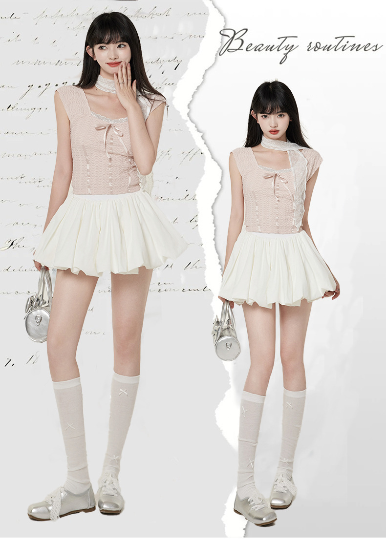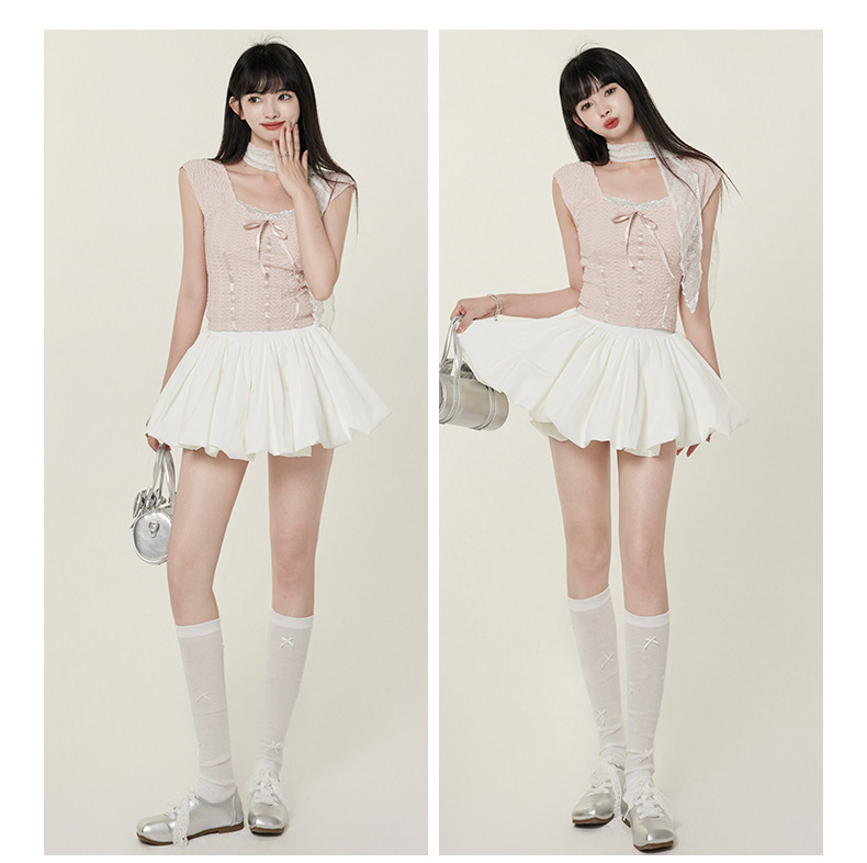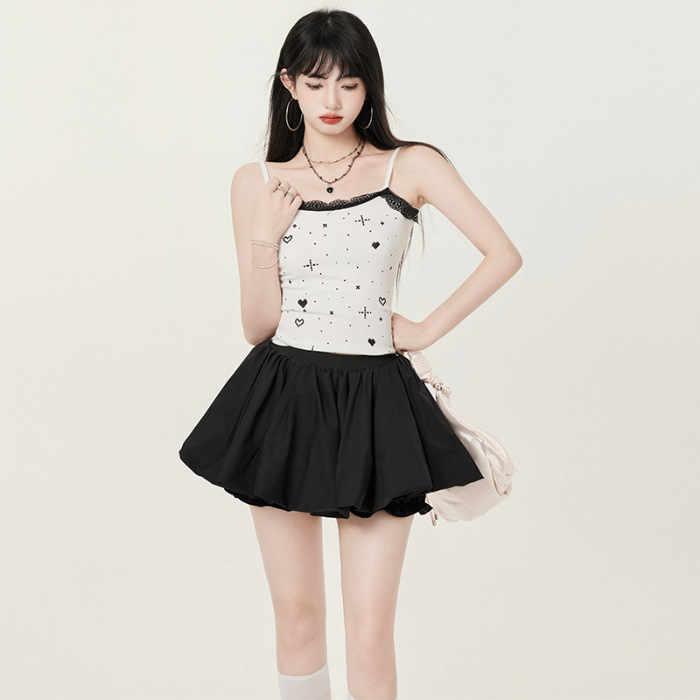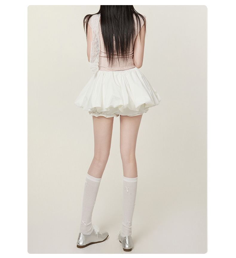 【인기 폭발 꽃봉오리 미니스커트】화이트 블랙 꽃봉오리 스타일 인터넷 연예인 퍼프스커트 초미니스커트 안전바지 포함스토어 가기
