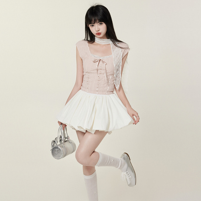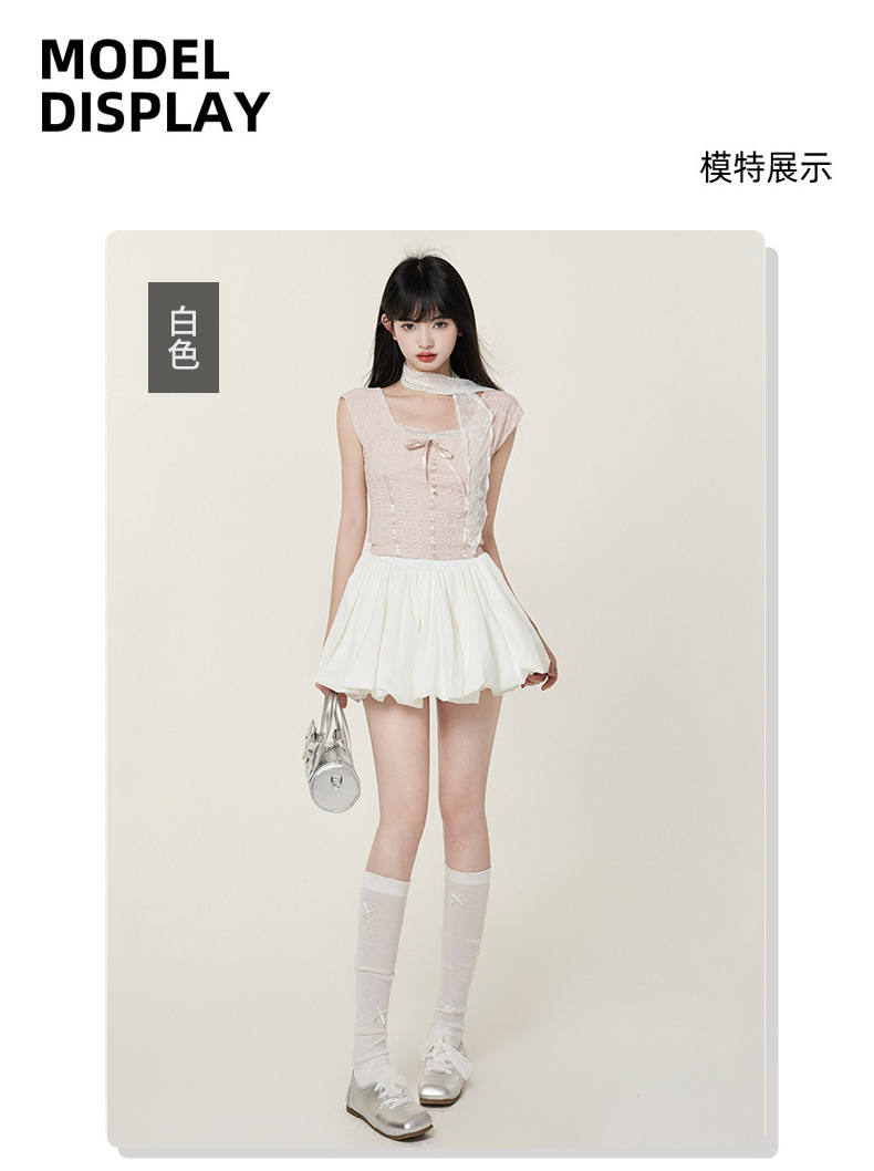 【인기 폭발 꽃봉오리 미니스커트】화이트 블랙 꽃봉오리 스타일 인터넷 연예인 퍼프스커트 초미니스커트 안전바지 포함
