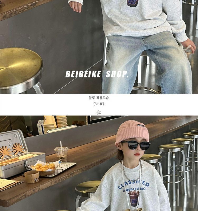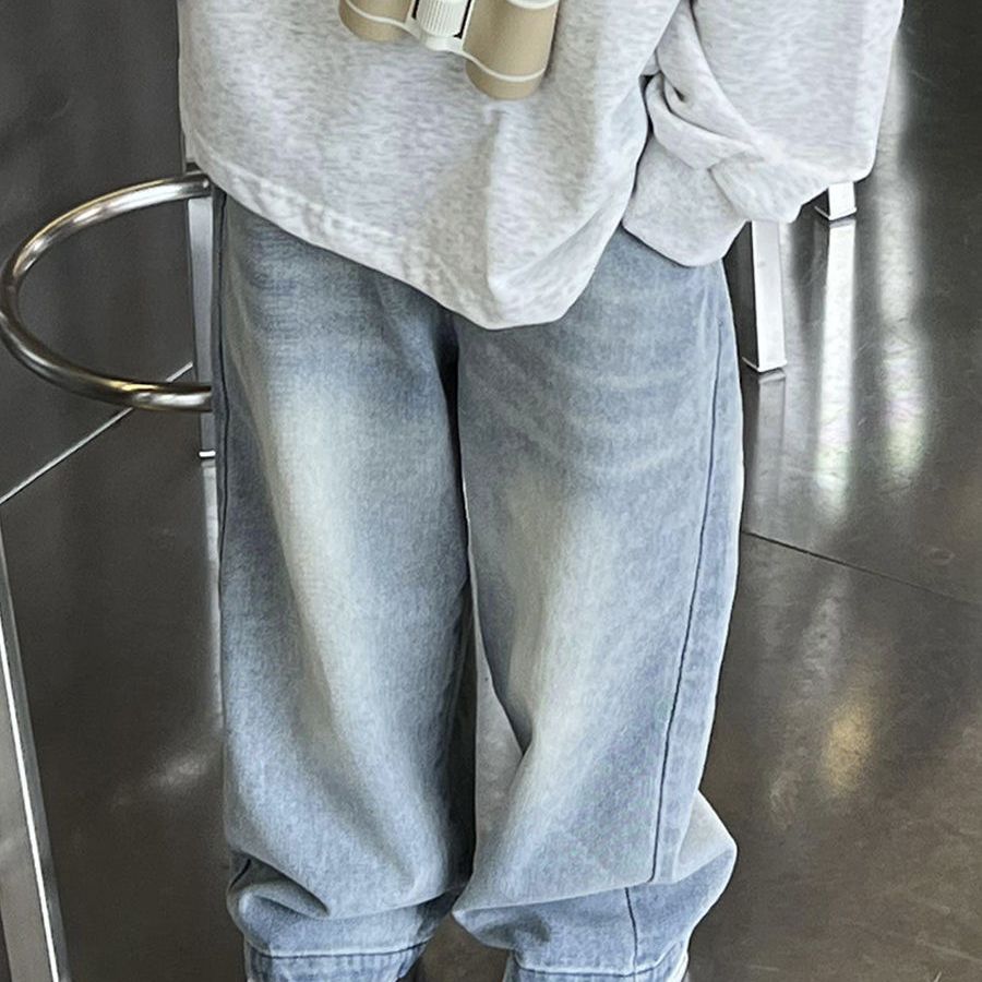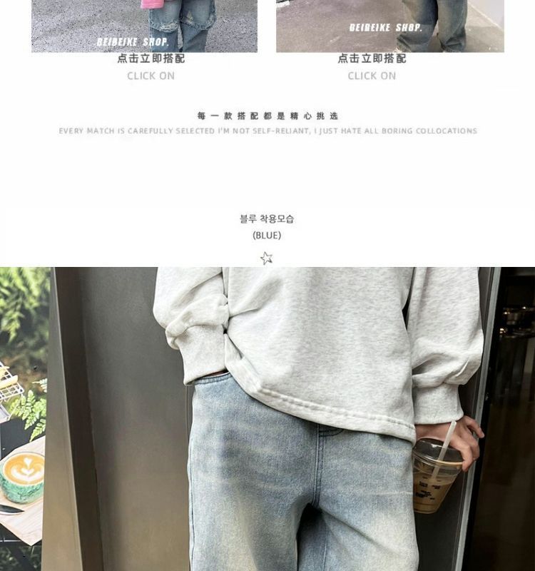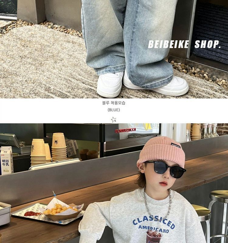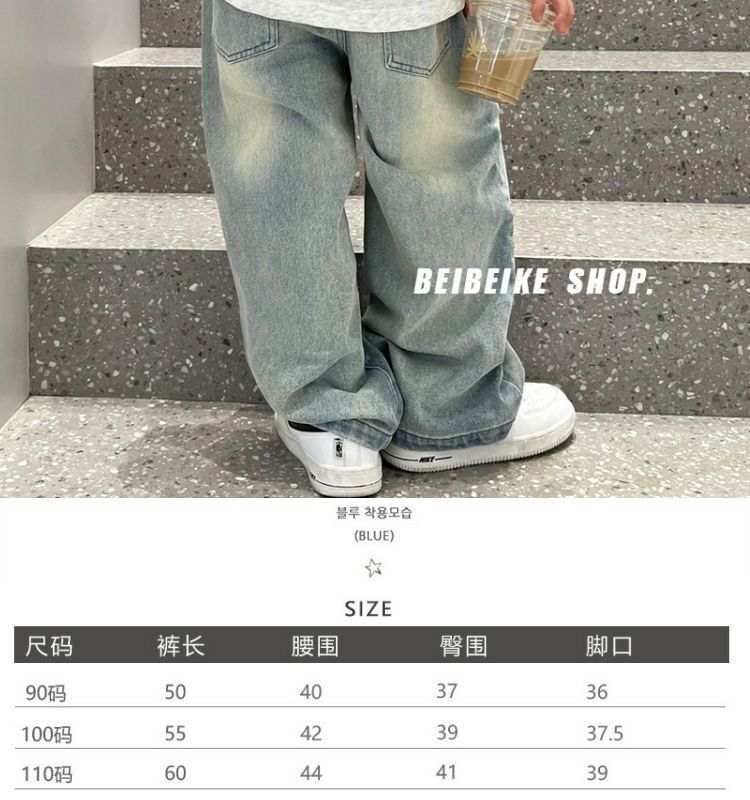 소년 라이트 블루 화이트 청바지 2025 봄, 여름 어린이 느슨한 스트레이트 바지 아기 바지 낙타 모피스토어 가기