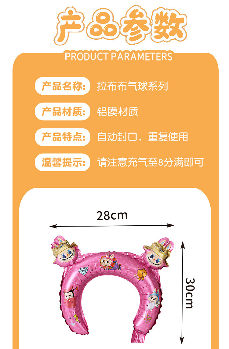 • Labubu 만화 머리 장식 풍선 브라운