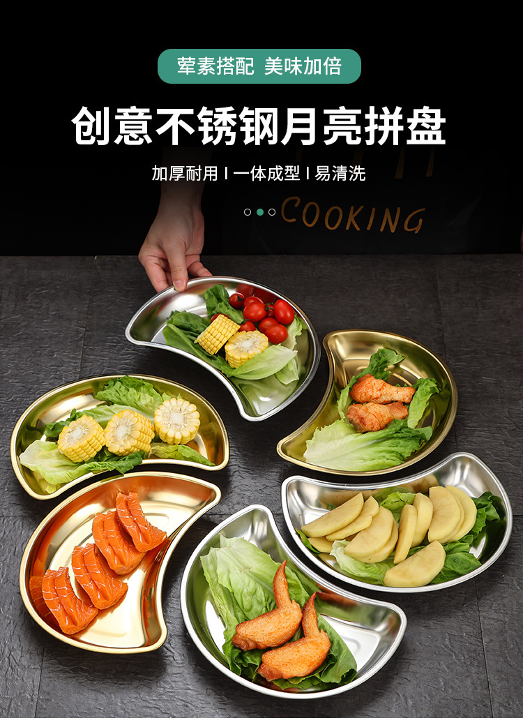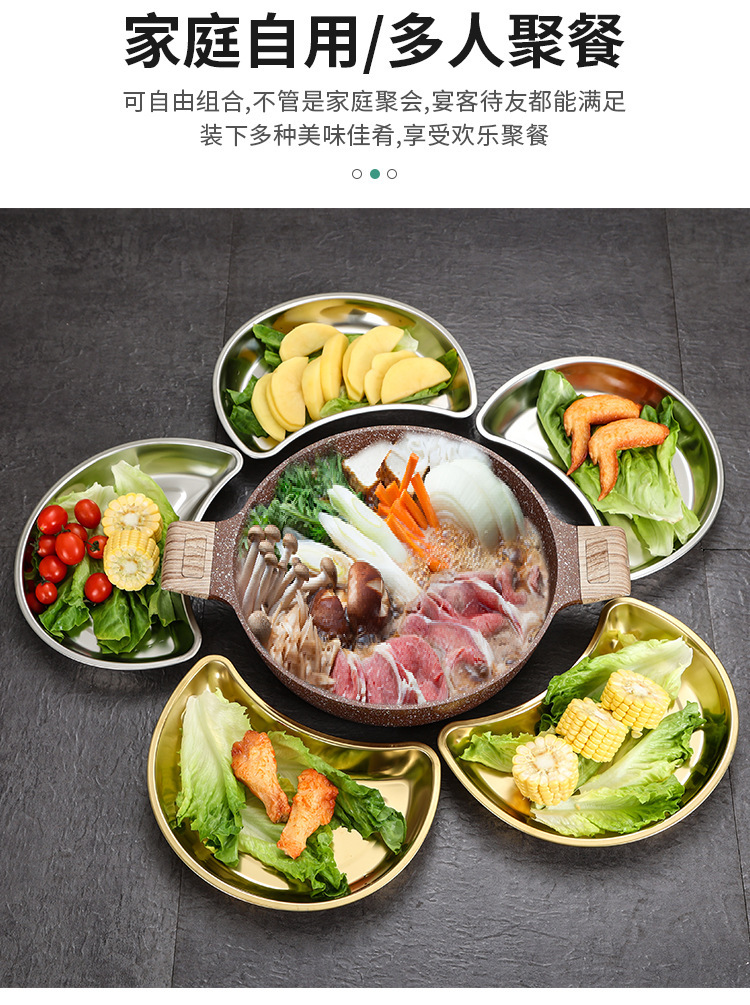 304 한국 스테인레스 스틸 스낵 플래터 크리 에이 티브 식기 전골 플래터 9 그리드 플래터 만두 플래터 문 플래터
