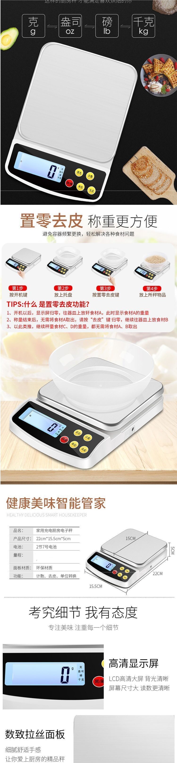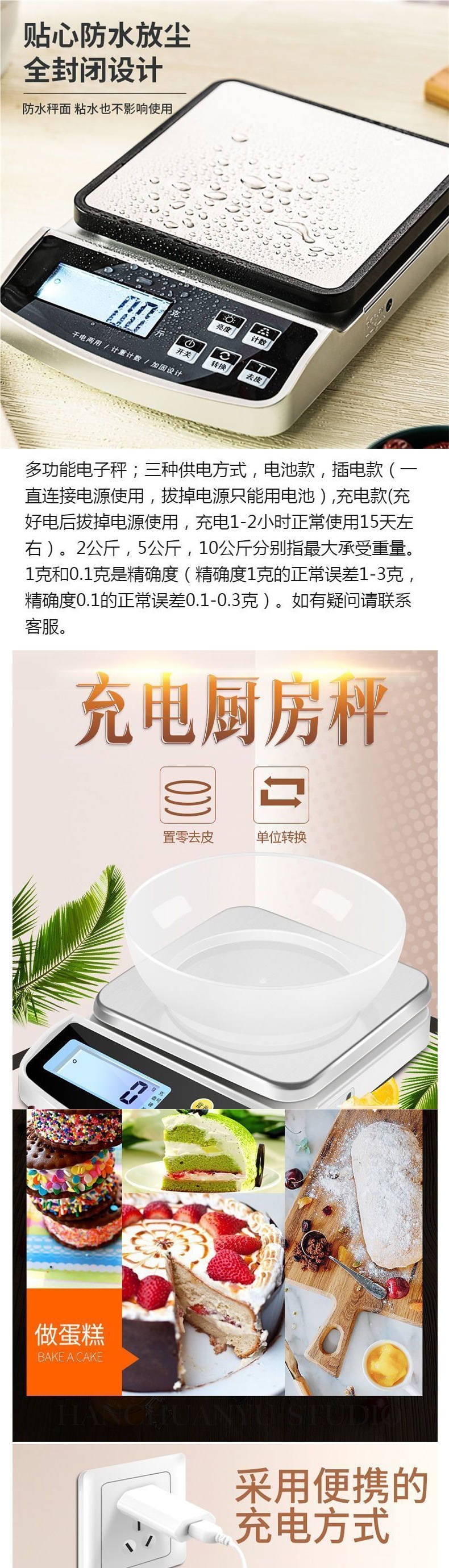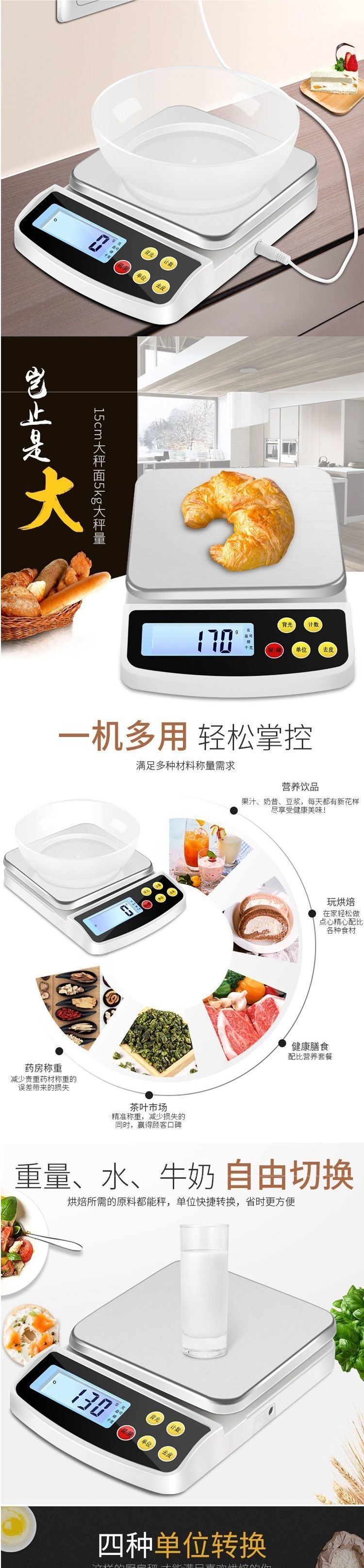 정확한 충전 주방 저울 가정용 10kg 1g 전자 저울 정확도 0.1 베이킹 식품 그램 저울