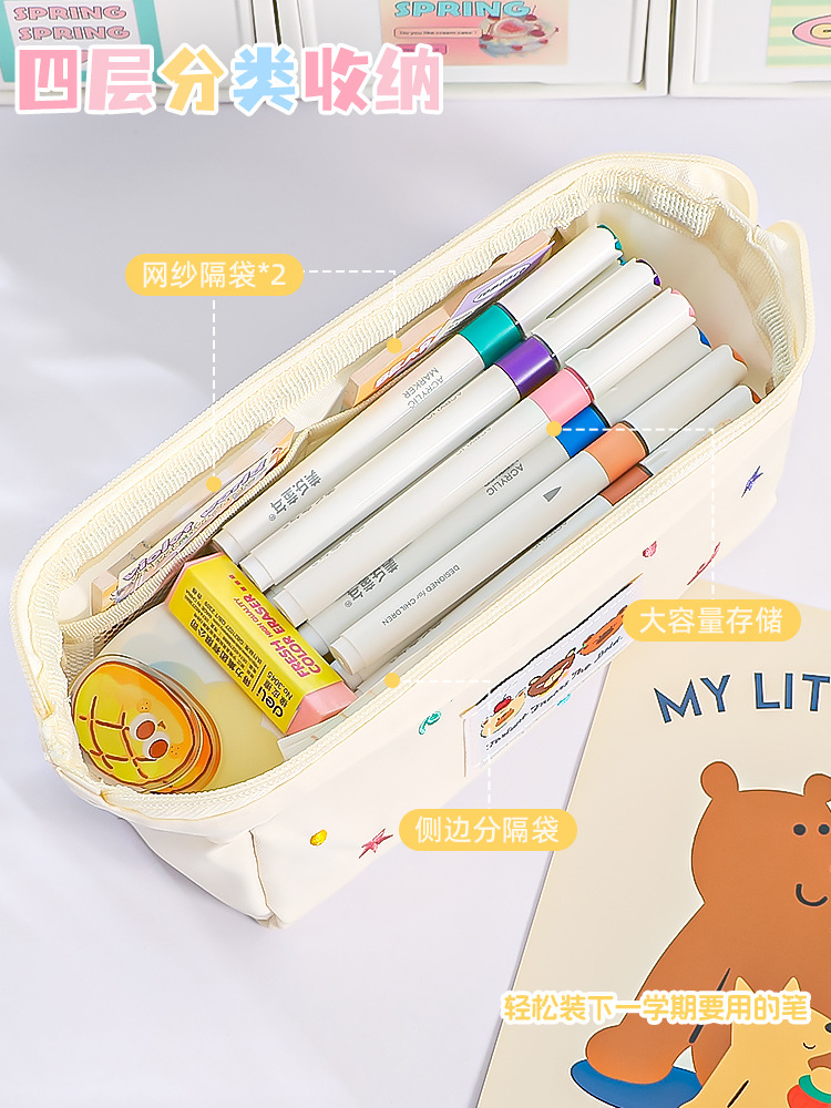 인스 스타일 곰돌이 필통 2026 신상 4단 대용량 필통 귀엽고 상큼한 소녀 감성 문구 가방스토어 가기