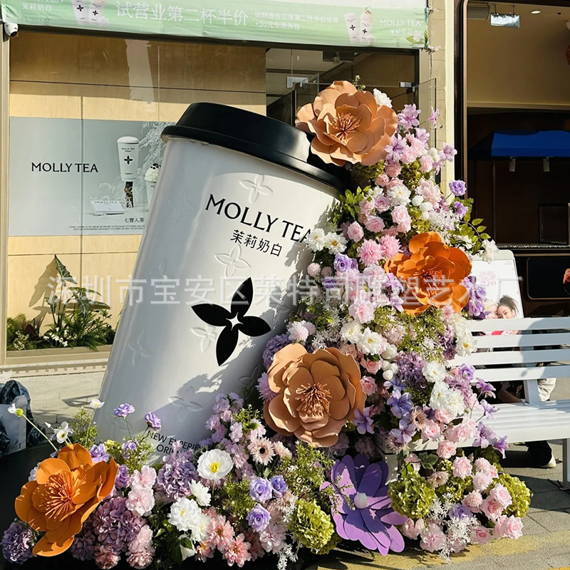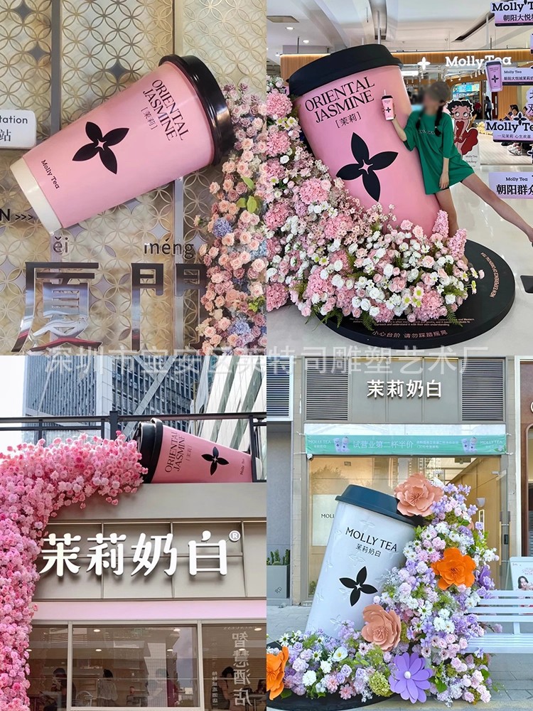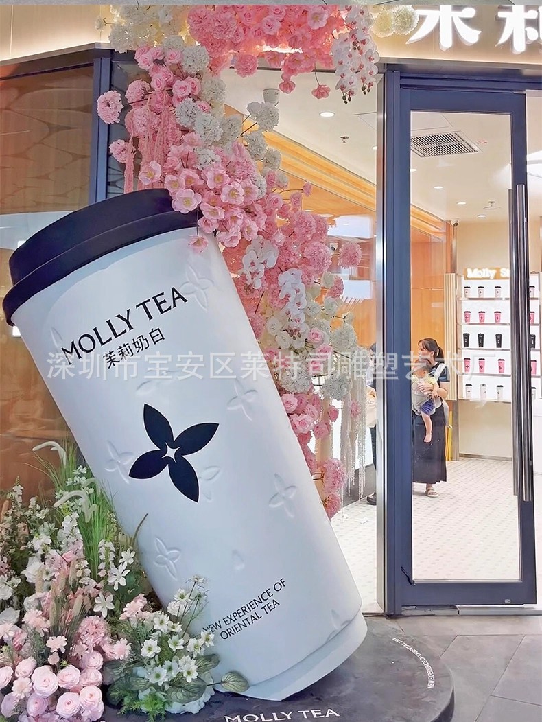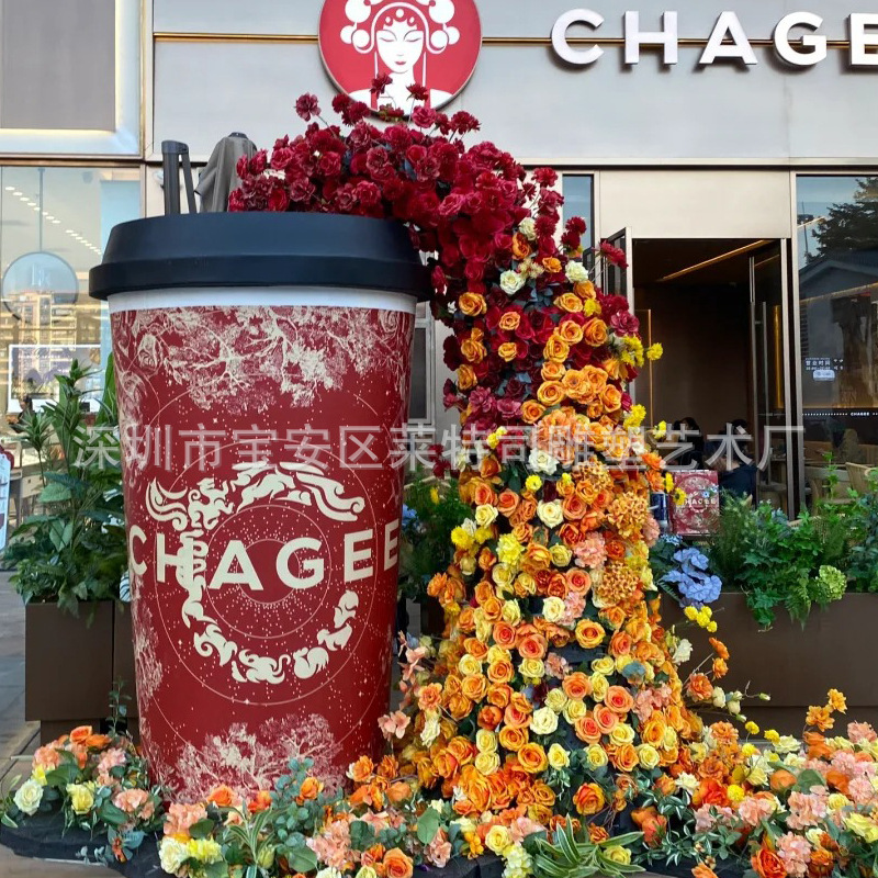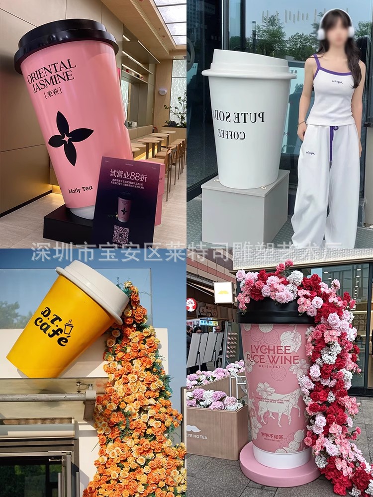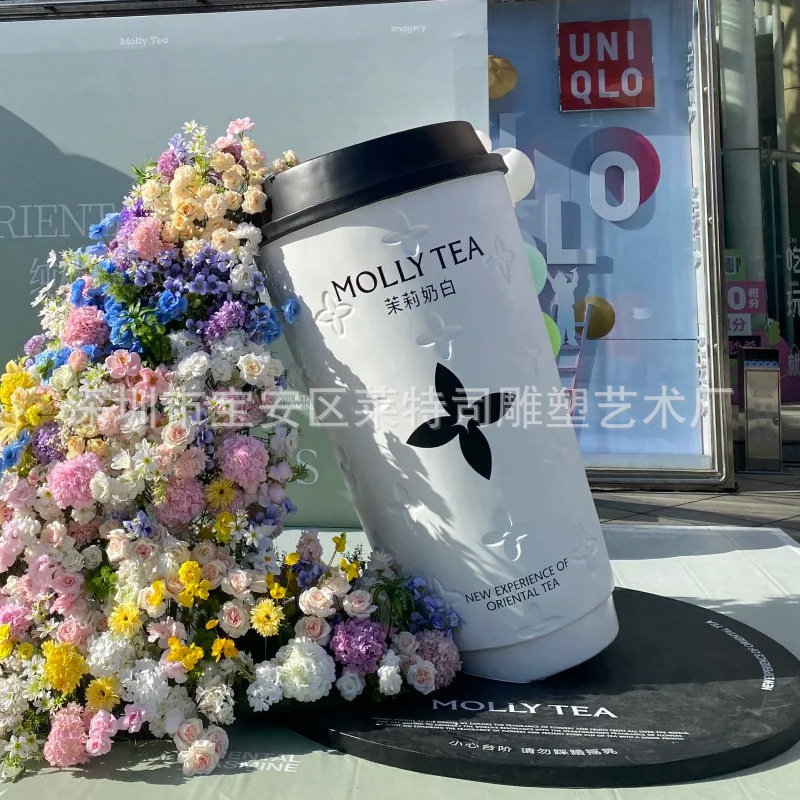 인터넷 연예인 체크인 밀크티 컵 모델 조각 커피숍 입구 문 장식은 거대한 벽걸이 장식품을 매력적으로 끌어들입니다.
