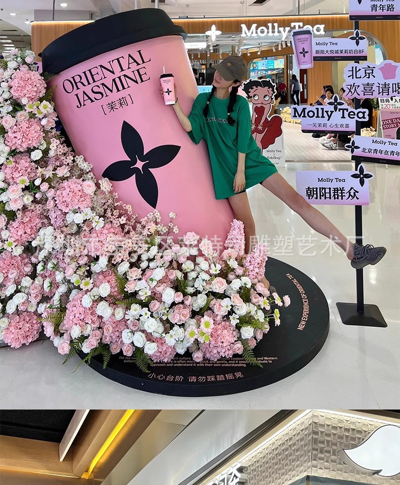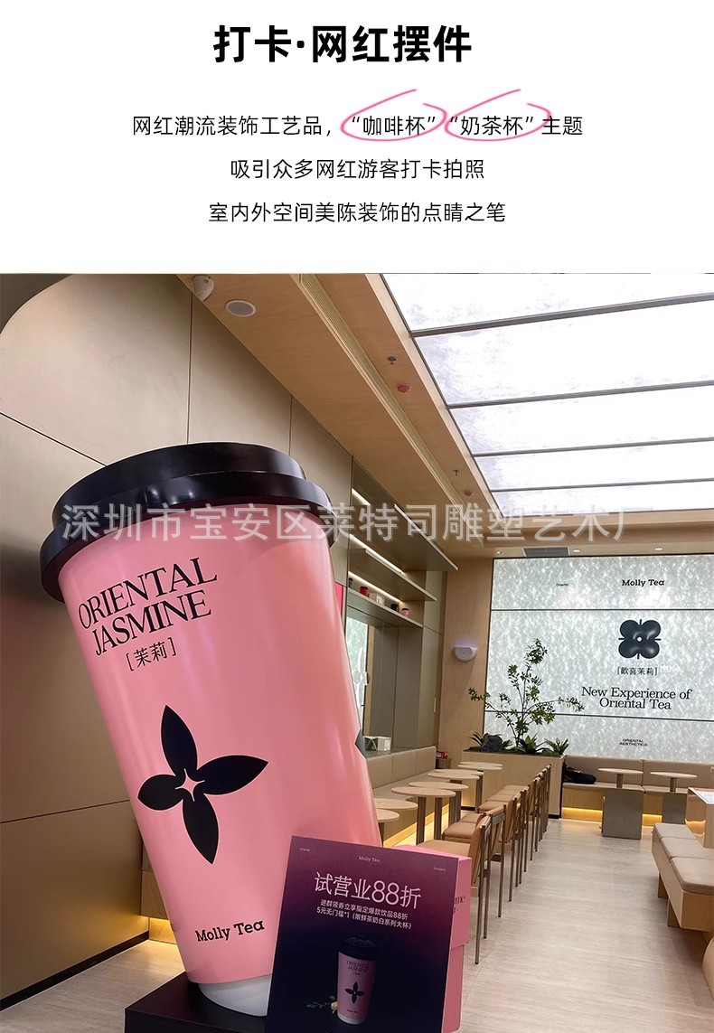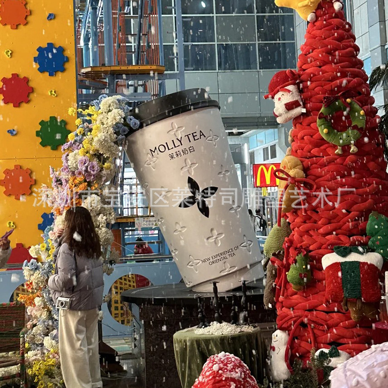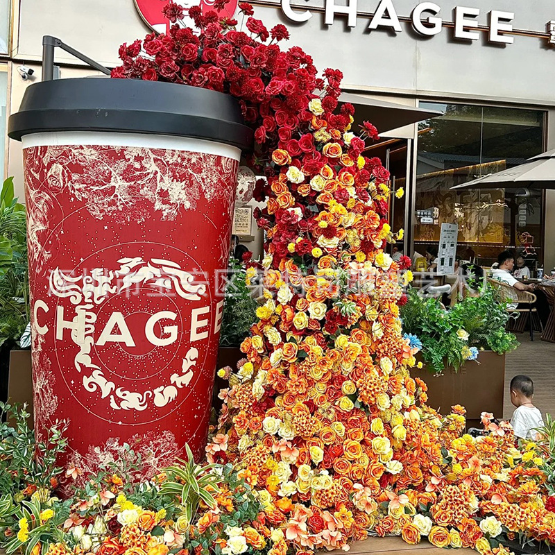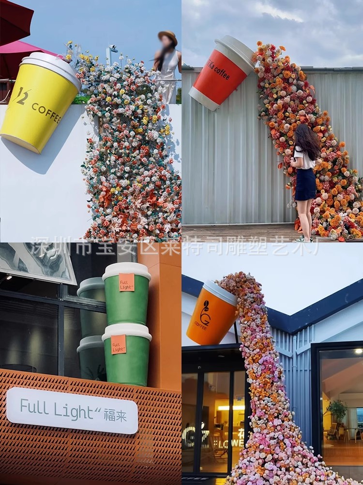 인터넷 연예인 체크인 밀크티 컵 모델 조각 커피숍 입구 문 장식은 거대한 벽걸이 장식품을 매력적으로 끌어들입니다.
