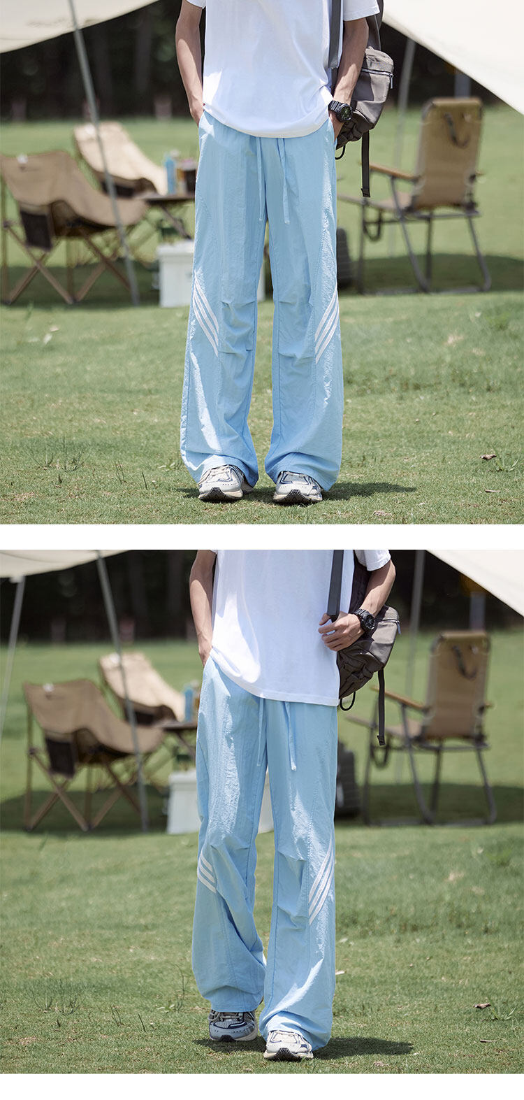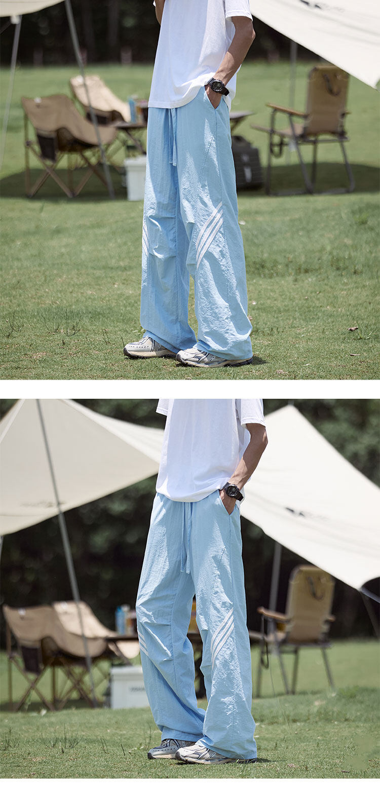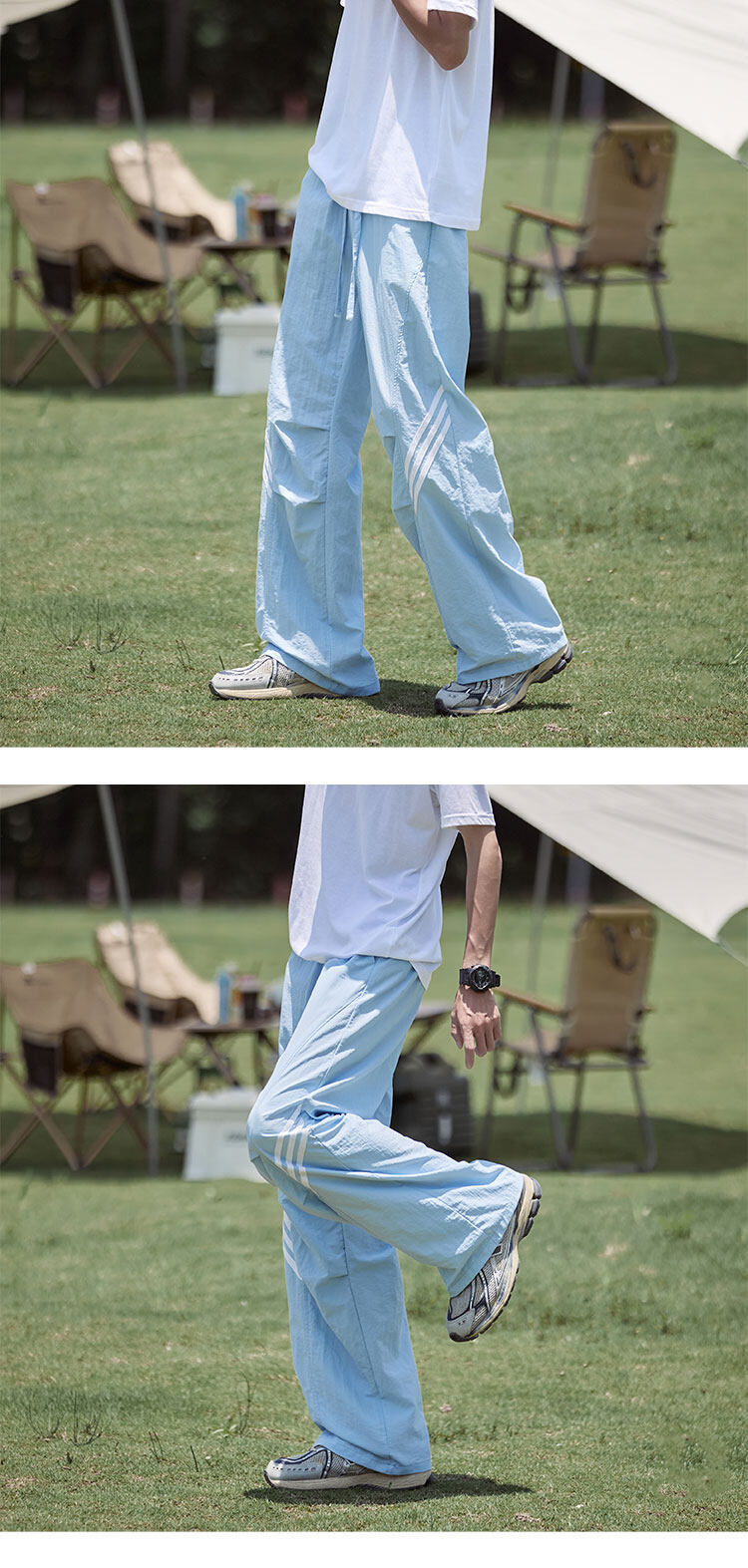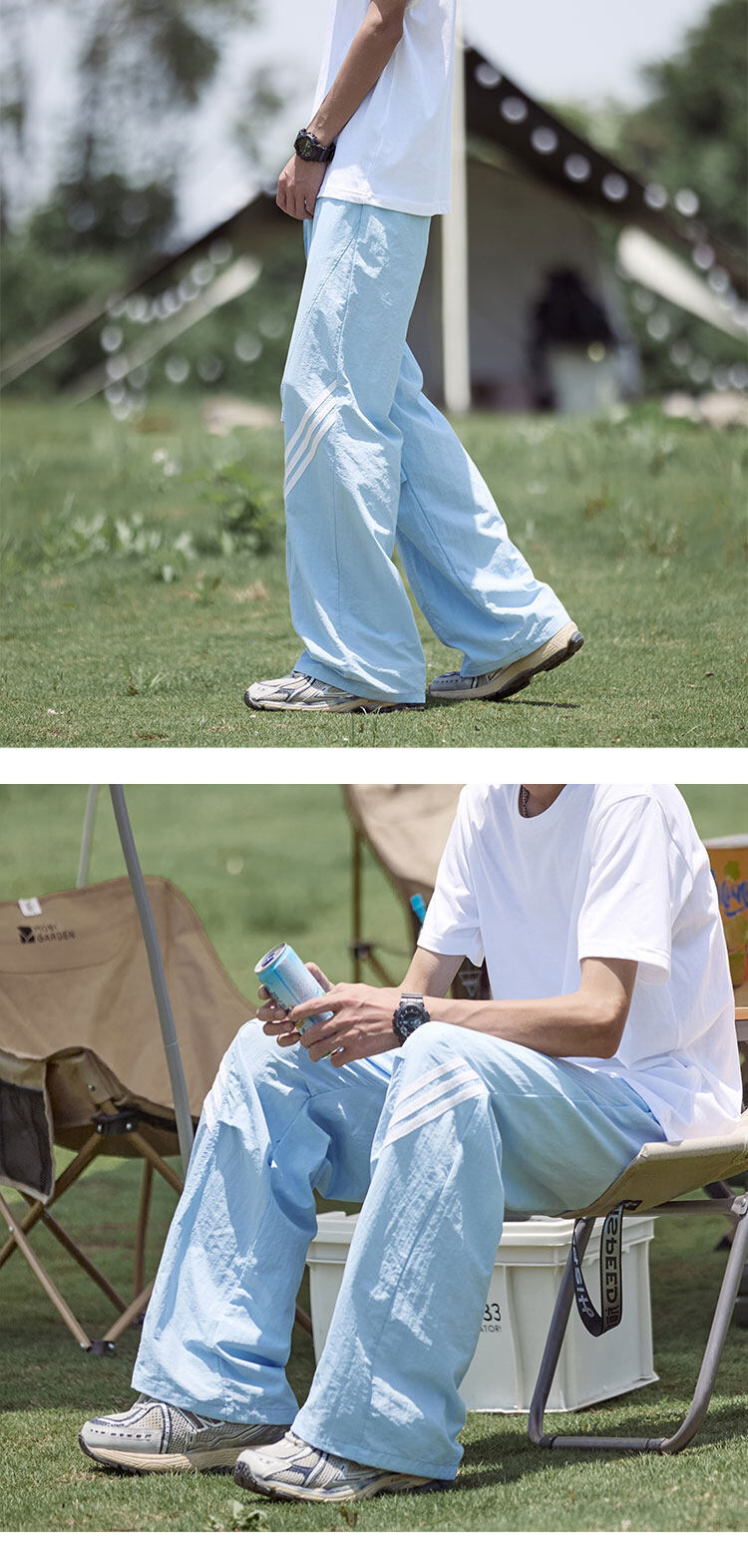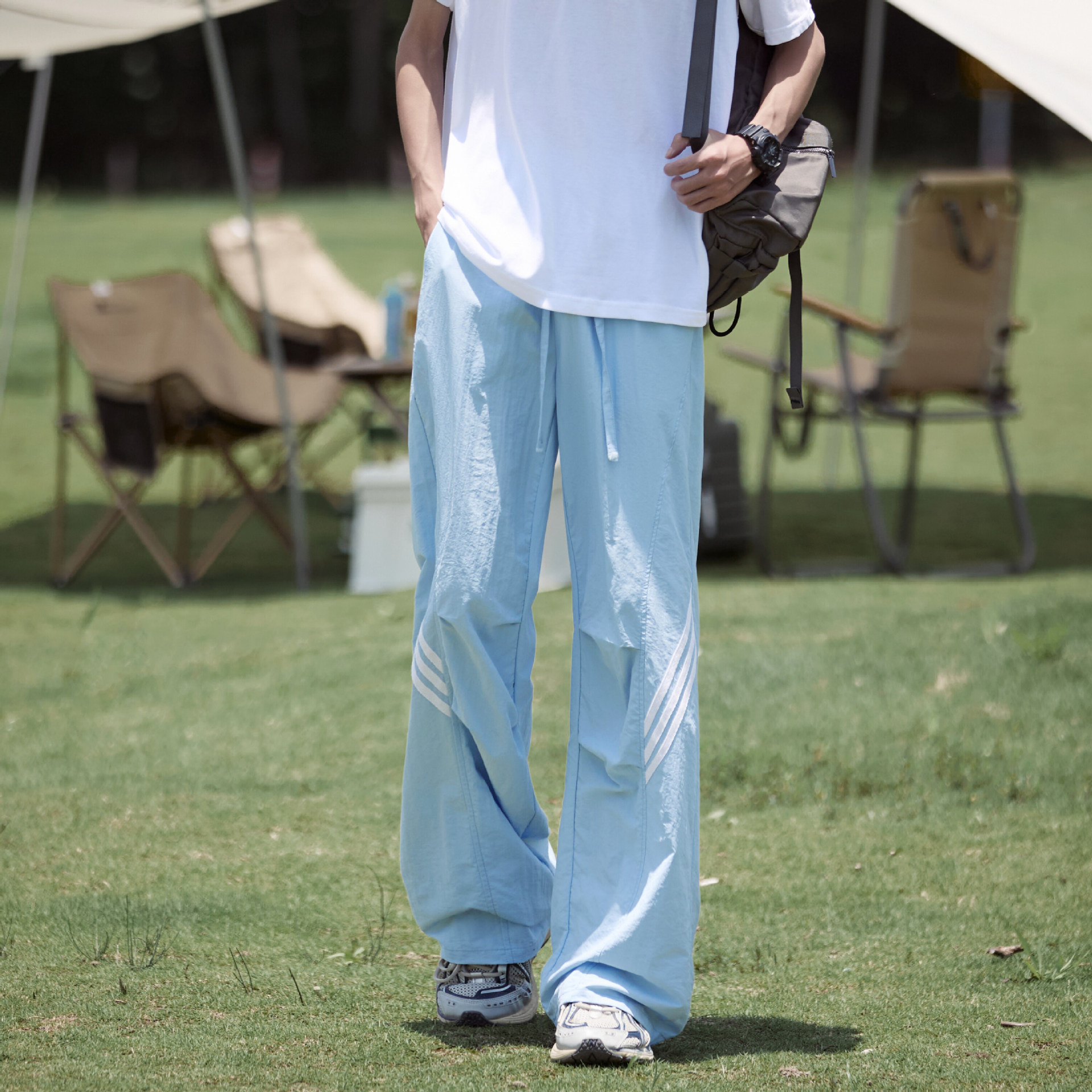 여름용 남성용 아메리칸 스트라이프 캐주얼 팬츠, 얇고 속건성, 통기성이 뛰어난 루즈한 청소년 스트레이트 캐주얼 팬츠