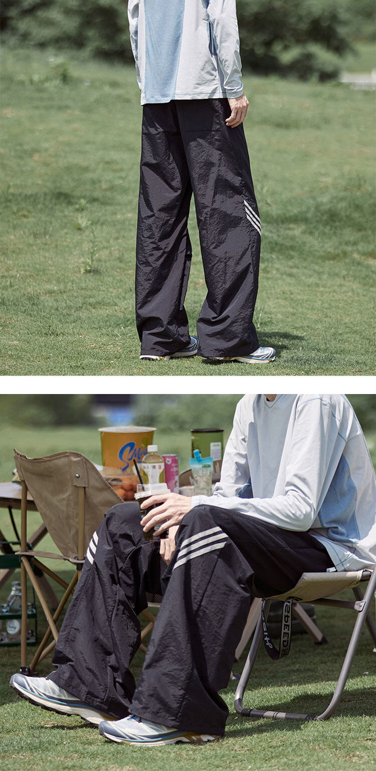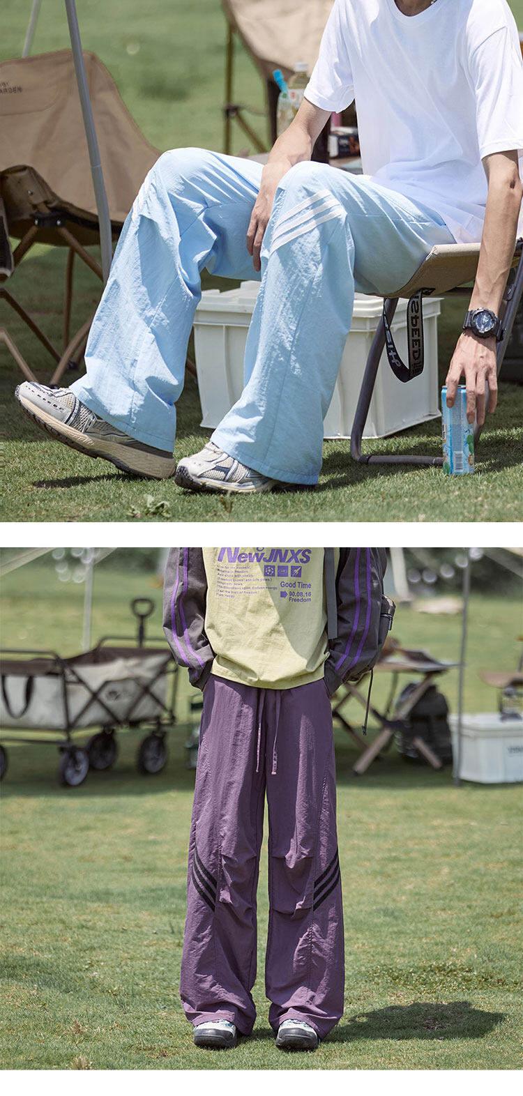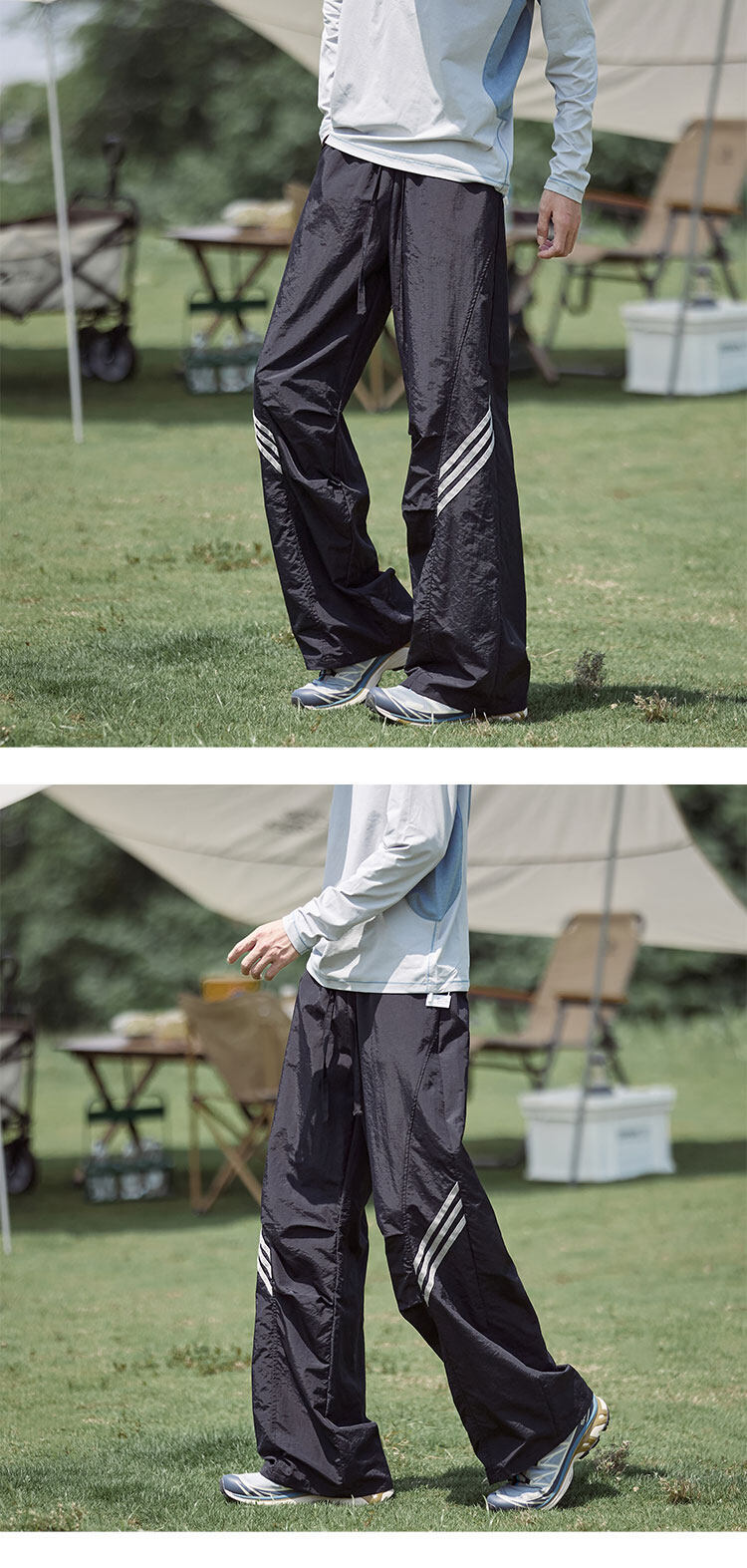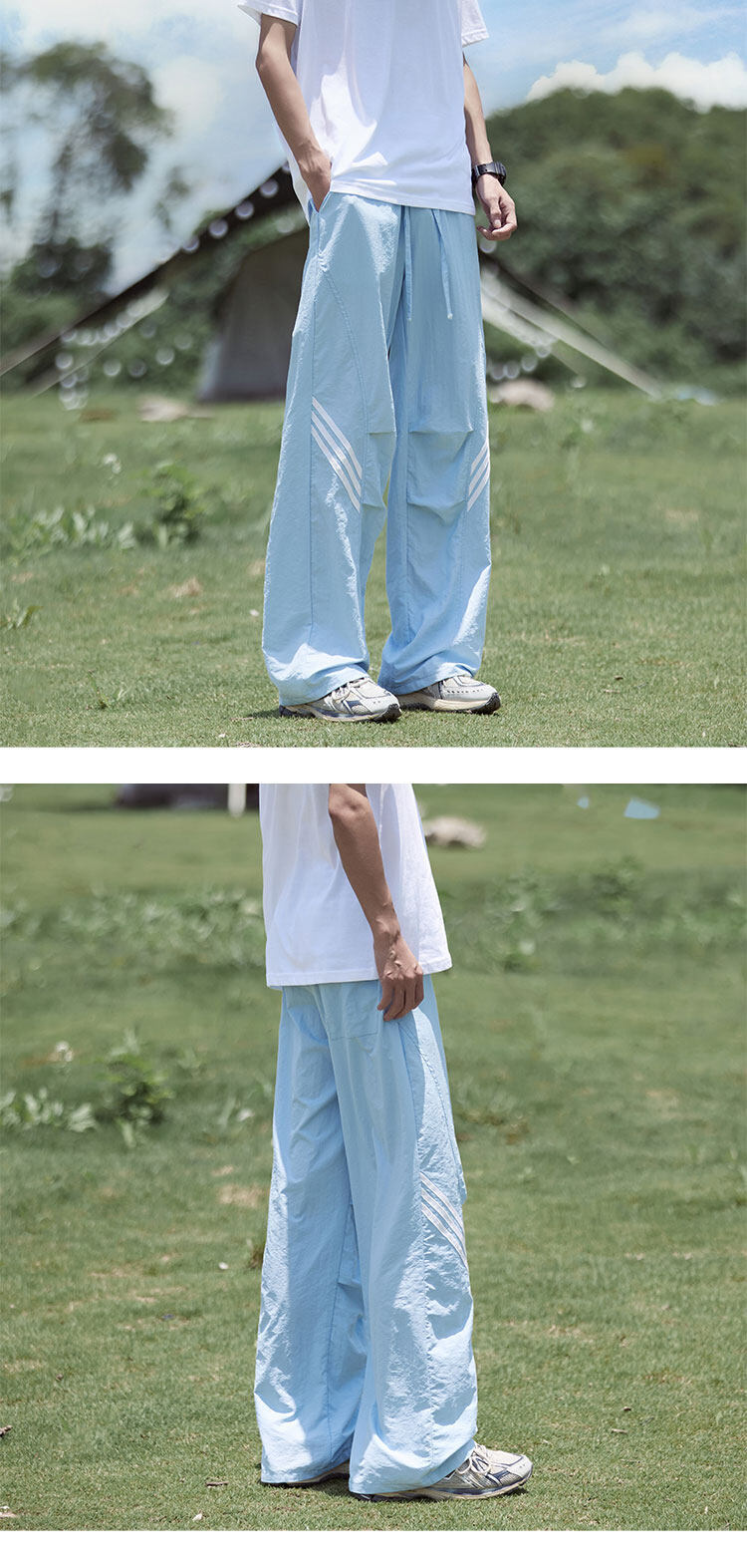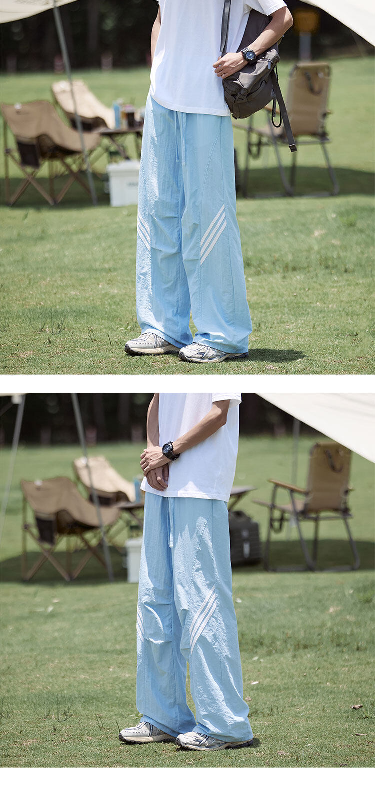 여름용 남성용 아메리칸 스트라이프 캐주얼 팬츠, 얇고 속건성, 통기성이 뛰어난 루즈한 청소년 스트레이트 캐주얼 팬츠