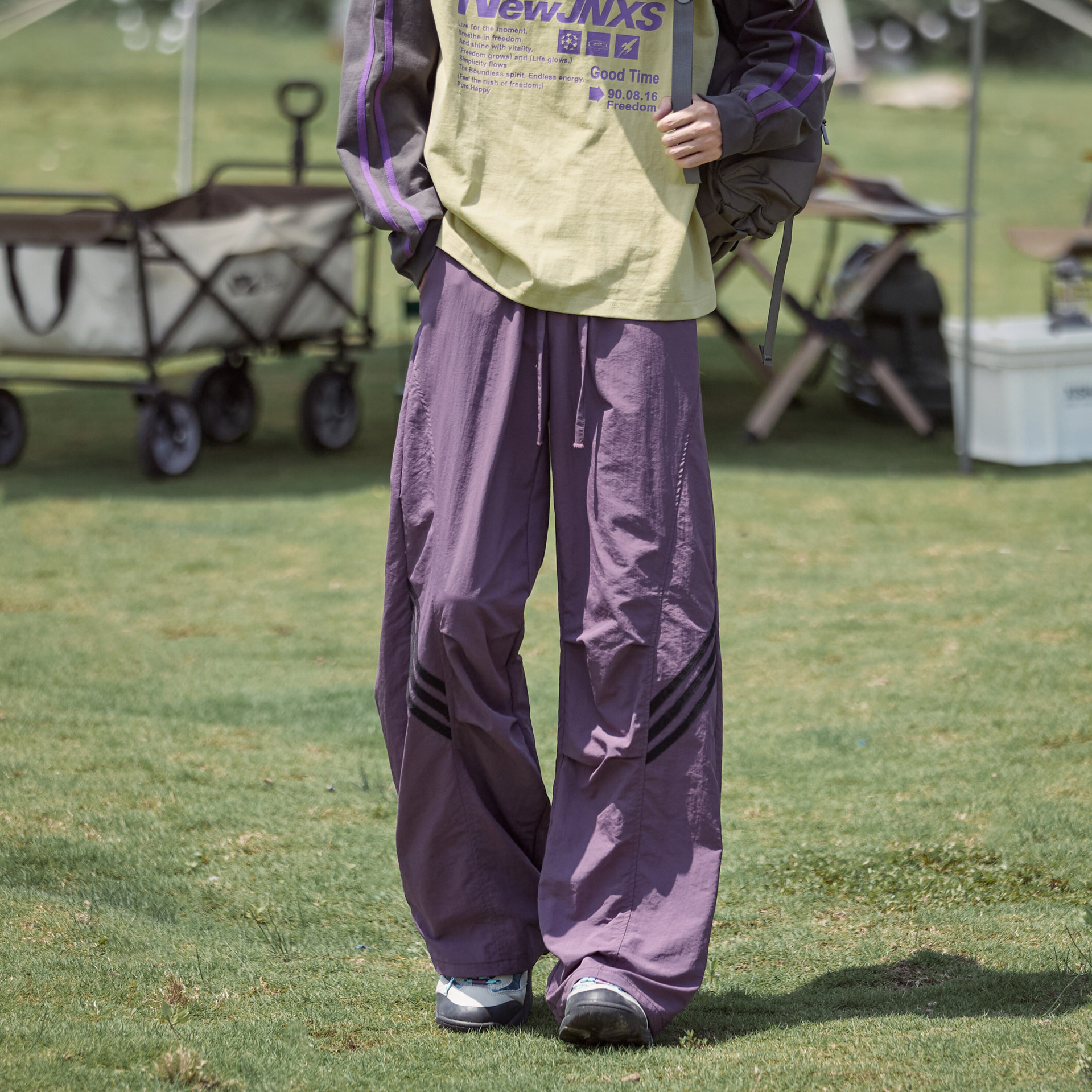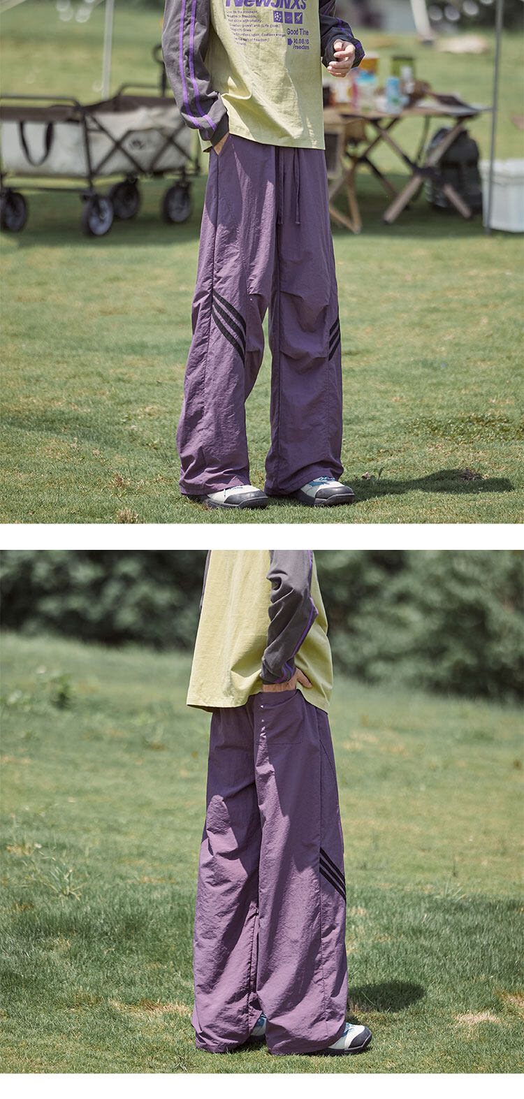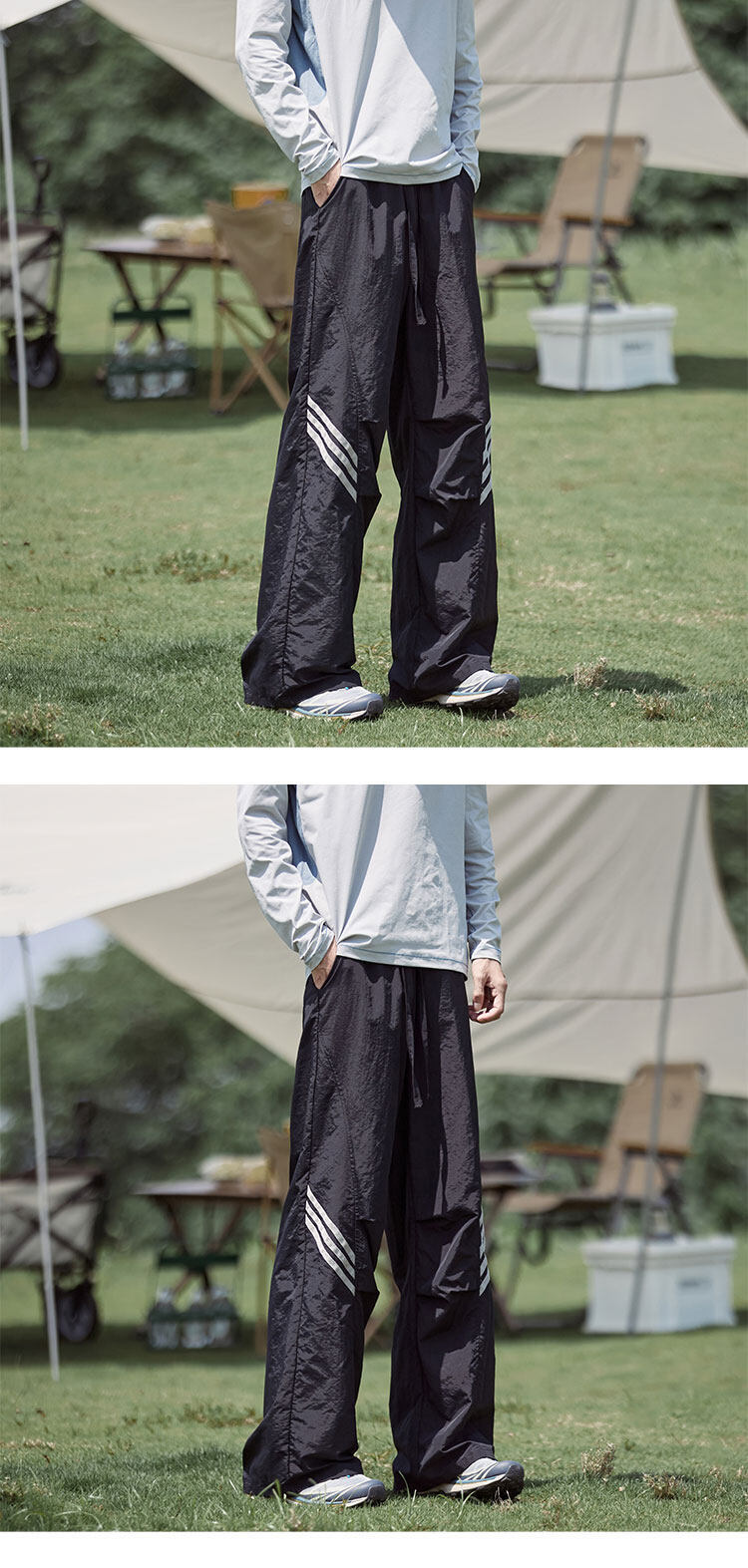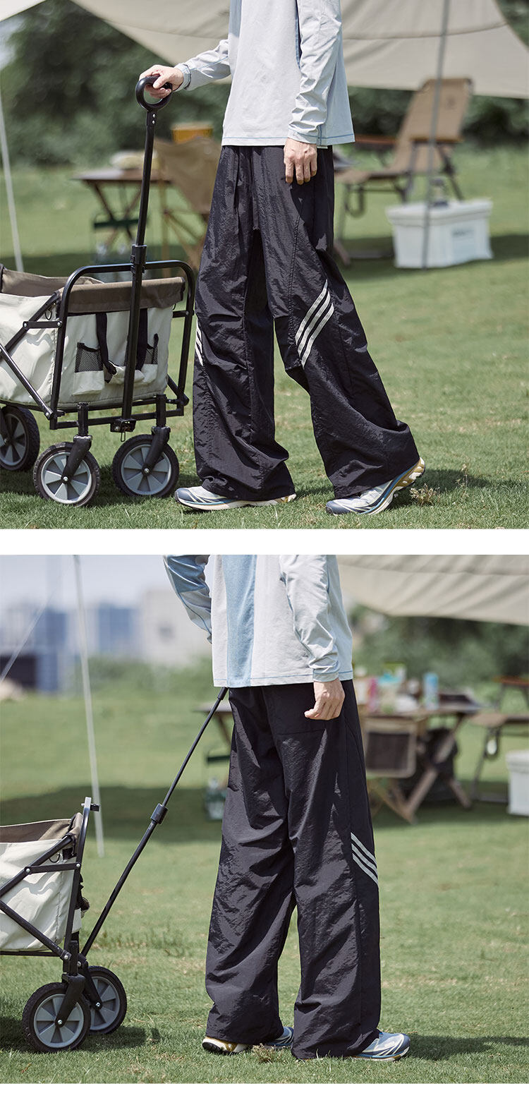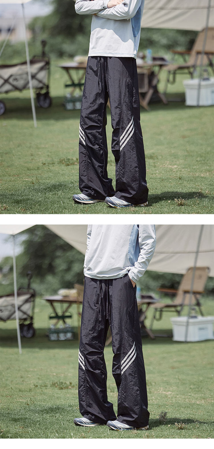 여름용 남성용 아메리칸 스트라이프 캐주얼 팬츠, 얇고 속건성, 통기성이 뛰어난 루즈한 청소년 스트레이트 캐주얼 팬츠