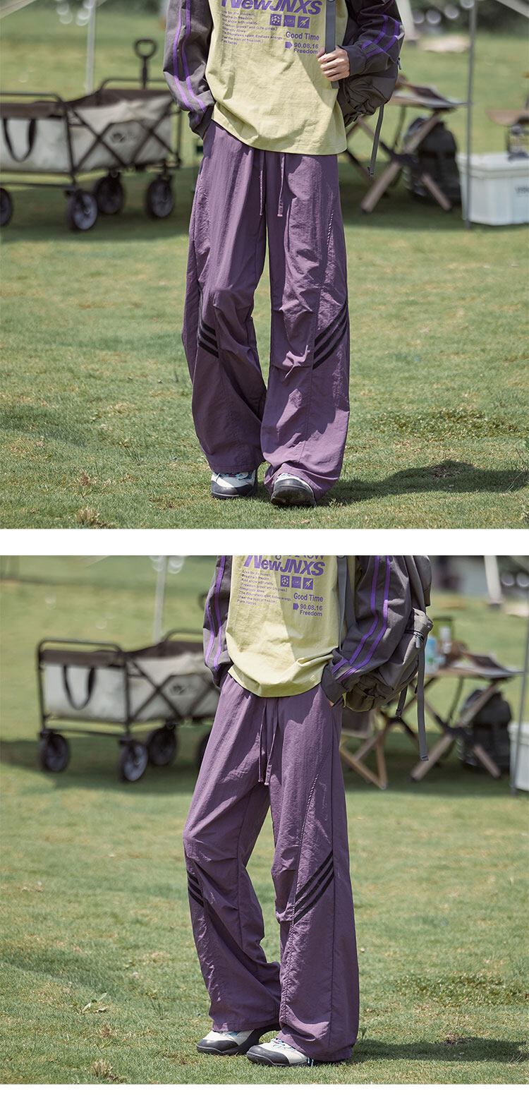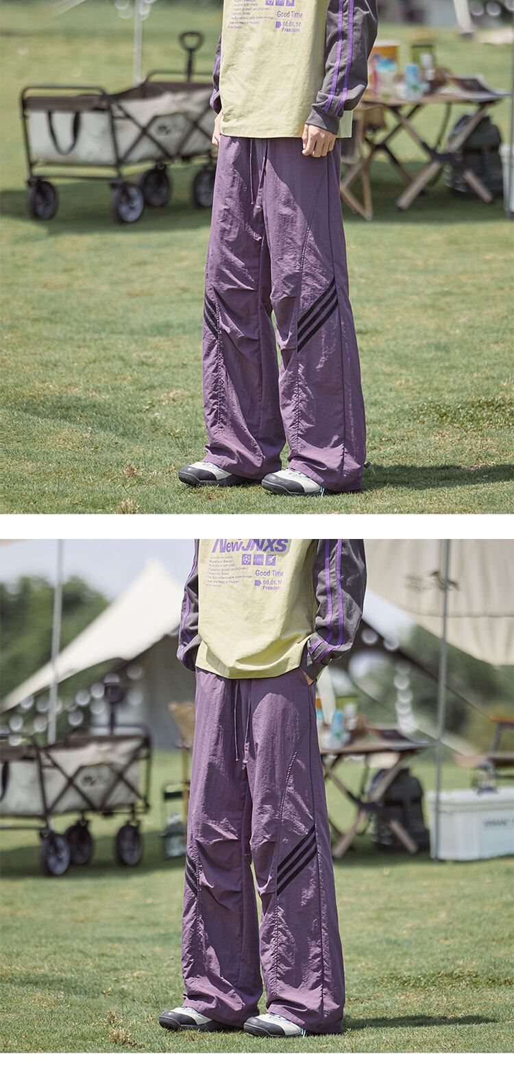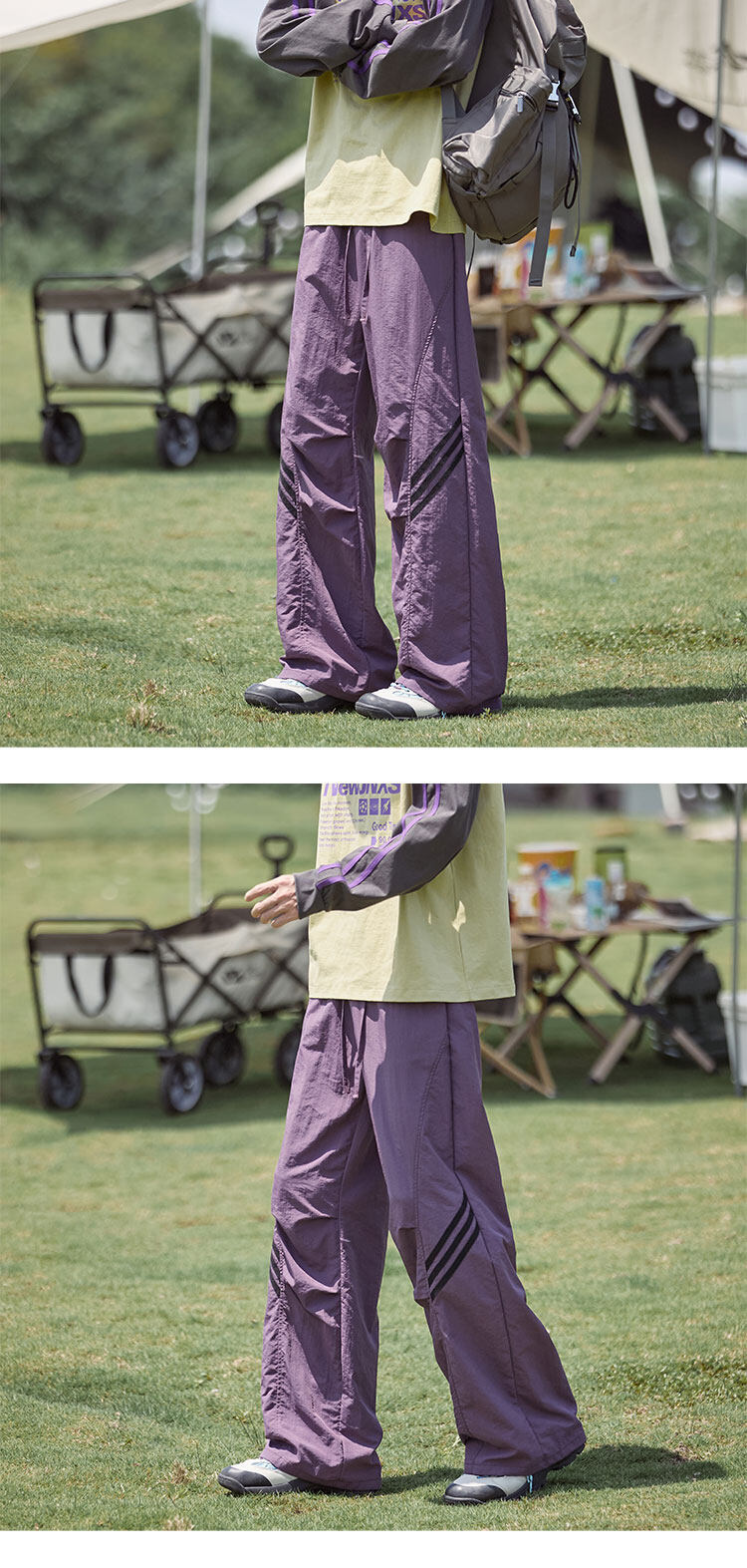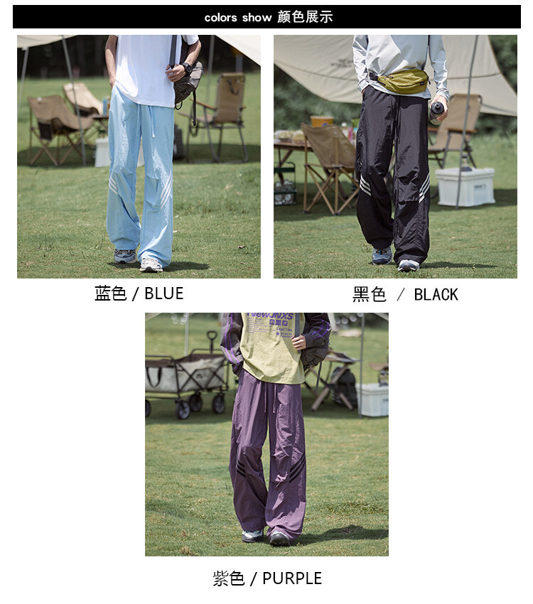 여름용 남성용 아메리칸 스트라이프 캐주얼 팬츠, 얇고 속건성, 통기성이 뛰어난 루즈한 청소년 스트레이트 캐주얼 팬츠스토어 가기