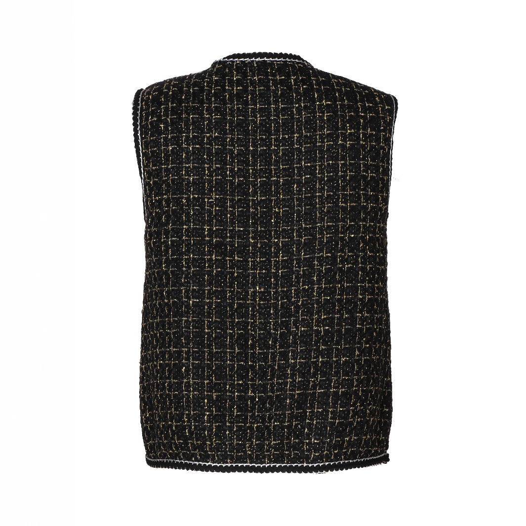 여성용 연예인 스타일 조끼, 한국식 대비색 트위드 직조 브이넥 민소매 체크무늬 조끼스토어 가기