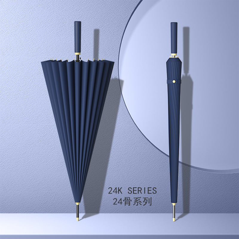 • [방풍섬유 우산갈비] [무료 스트랩 우산커버] 24갈비 확대 헤이즈 블루 - 직선 손잡이 폭풍우 우산